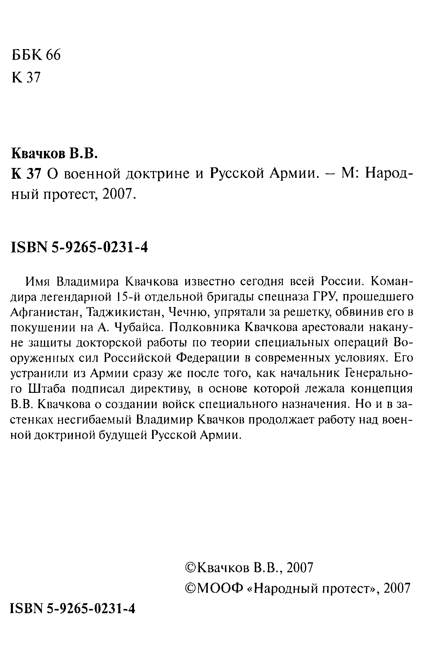 "О военной доктрине и Русской Армии" - читать интересную книгу автора (Квачков Владимир Васильевич)