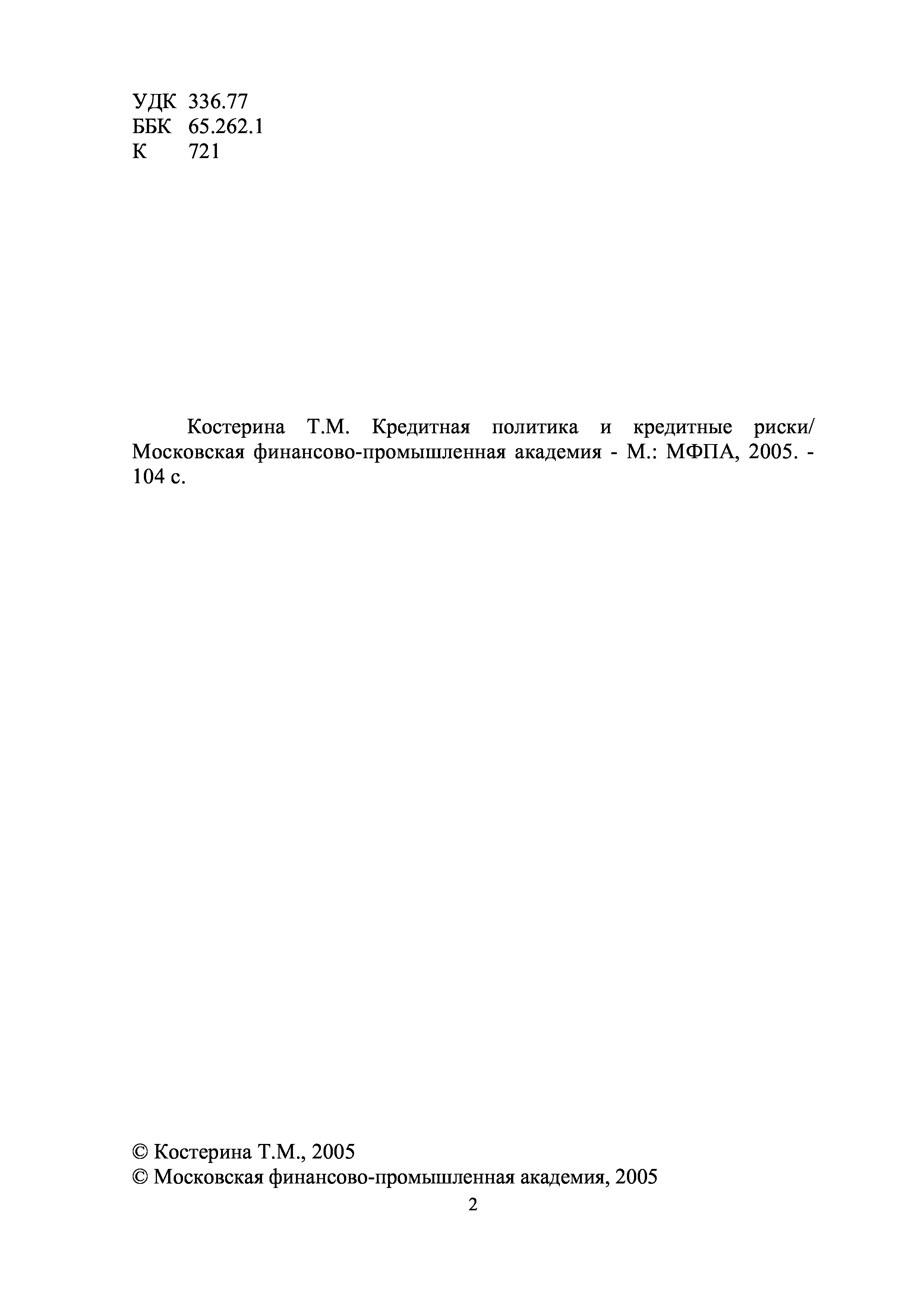 "Кредитная политика и кредитные риски" - читать интересную книгу автора (Костерина Т.М. )