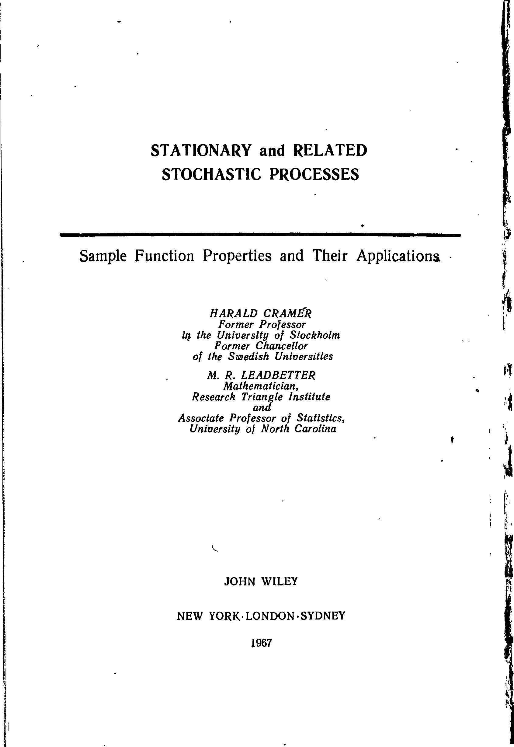 "Стационарные случайные процессы. Свойства выборочных функций и их приложения" - читать интересную книгу автора (Крамер Г., Лидбеттер М.) |