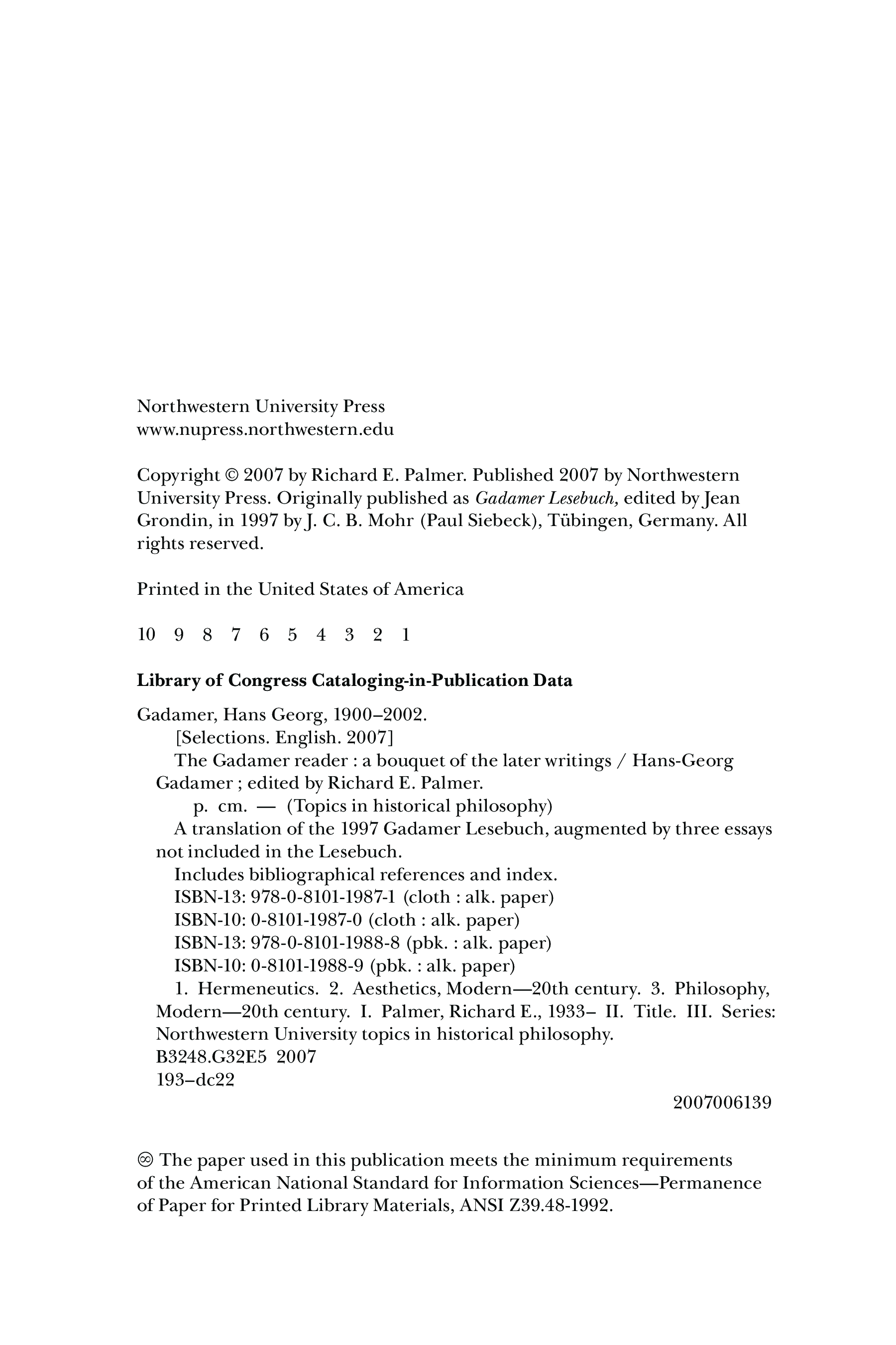 "The Gadamer Reader: A Bouquet of the Later Writings " - читать интересную книгу автора (Hans-Georg Gadamer, Richard E. Palmer) |