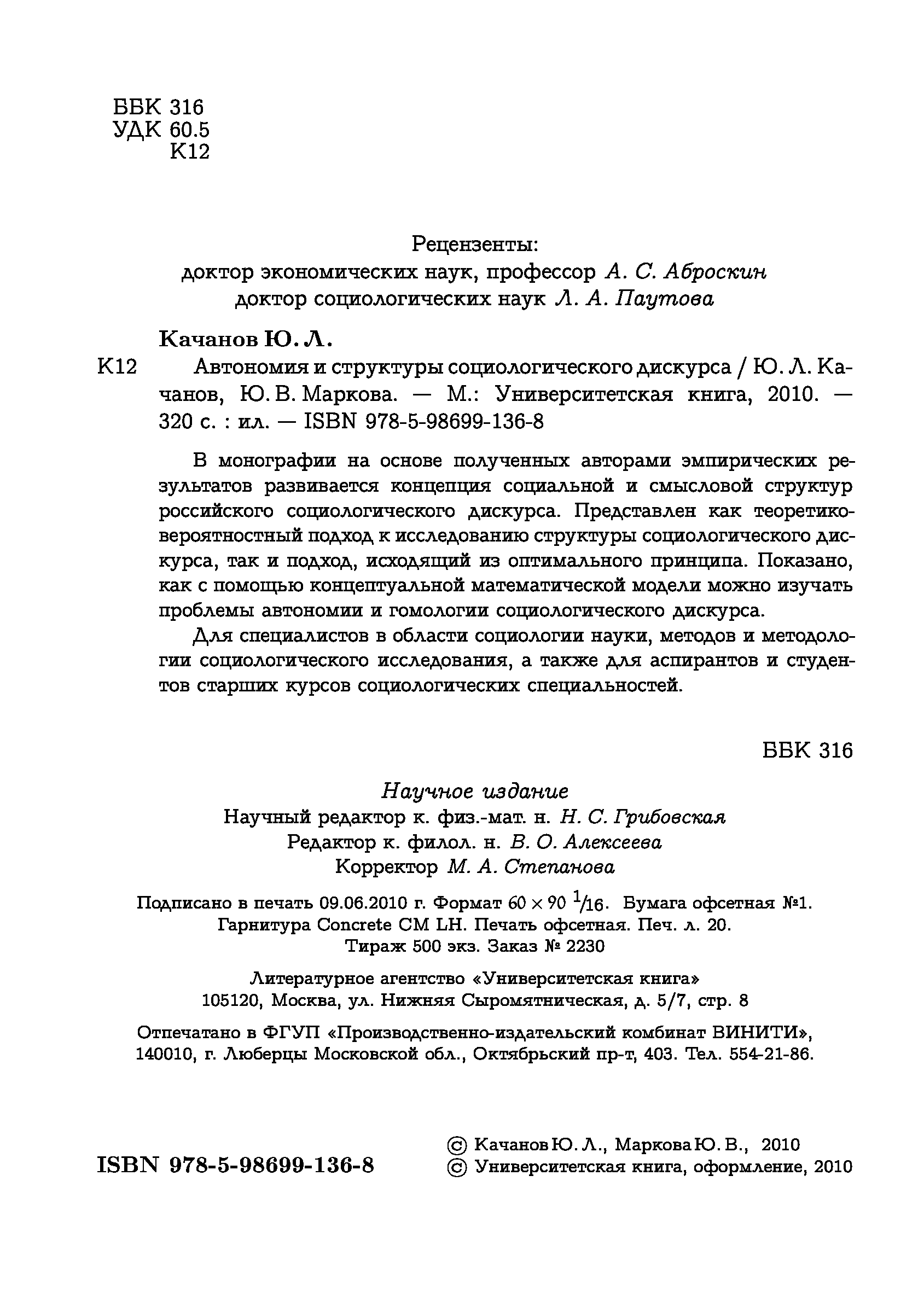 "Автономия и структуры социологического дискурса" - читать интересную книгу автора (Качанов Ю.Л., Маркова Ю.Л.) |