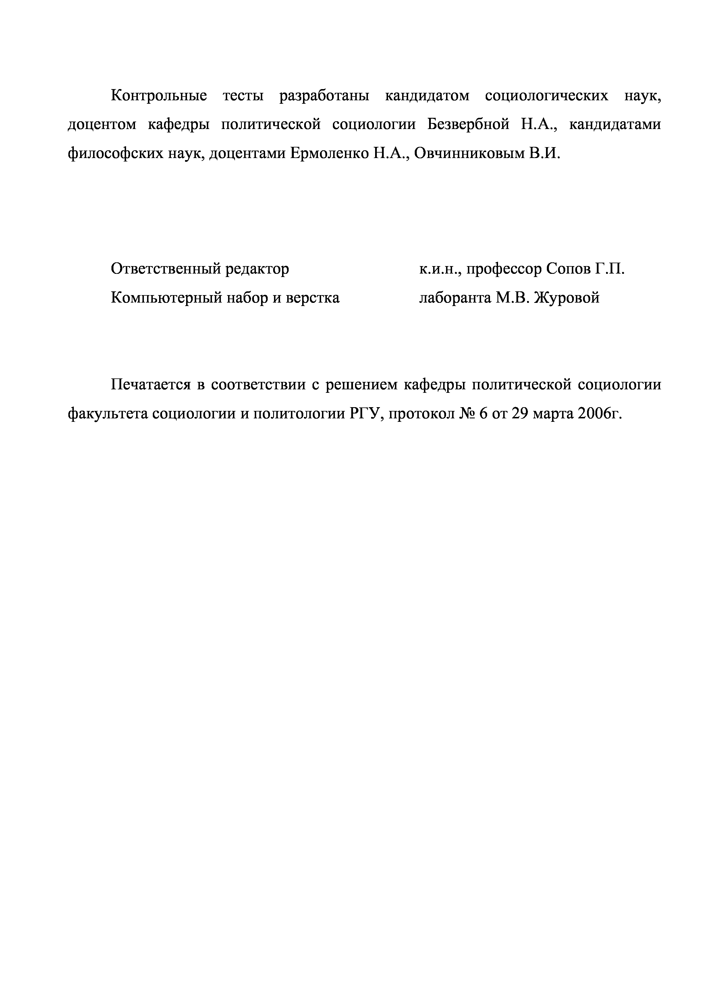 "Политическая социология: контрольные тесты к учебному курсу" - читать интересную книгу автора (Безвербная Н.А., Ермоленко Н.А., Овчинников...) |