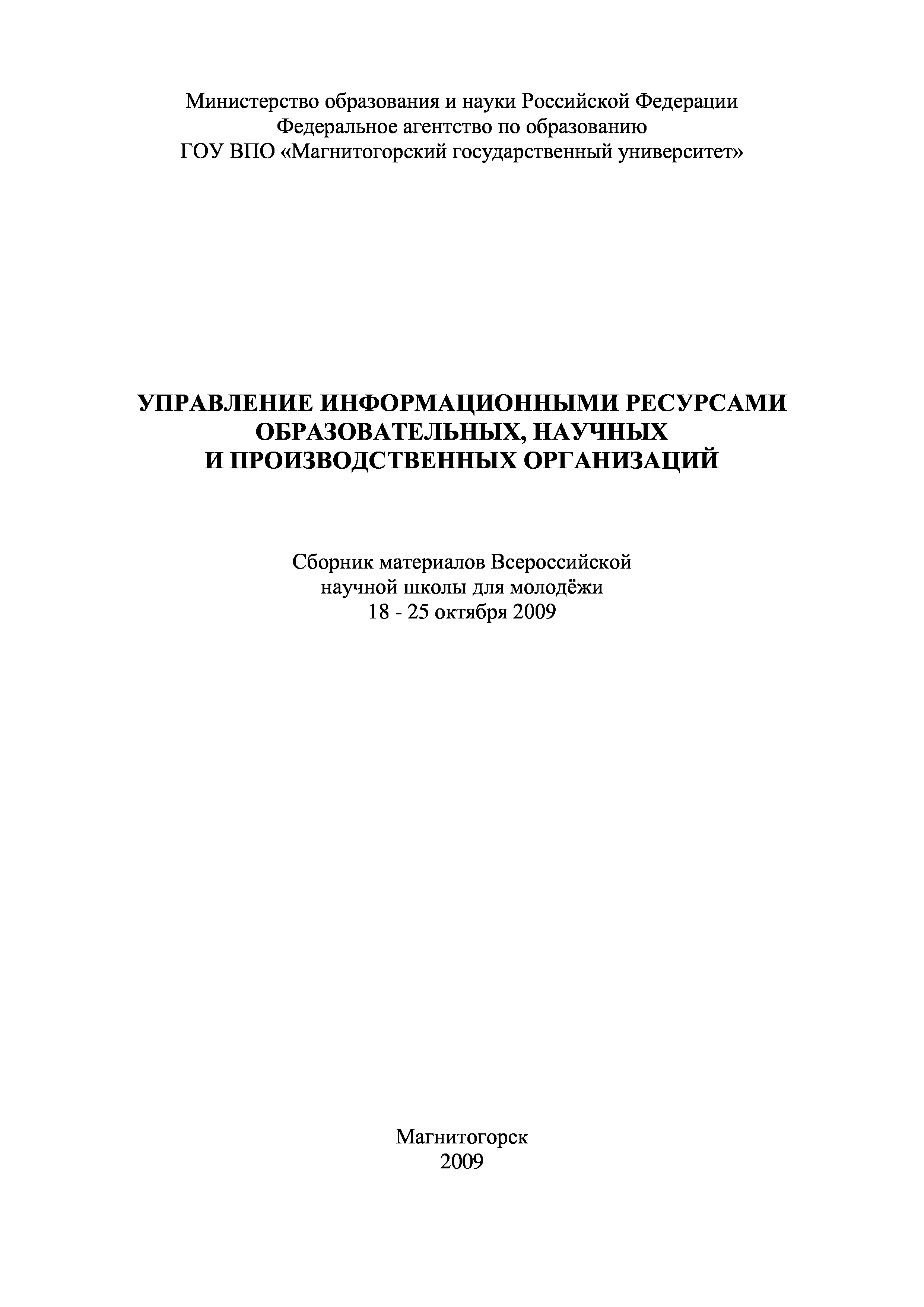 "Управление информационными ресурсами образовательных, научных и производственных организаций: Сборник материалов Всероссийской научной школы для молодежи (2009 г.)" - читать интересную книгу автора (Под общ. В.П. Семенова, З.М. Уметбаева, Г.Н....) |