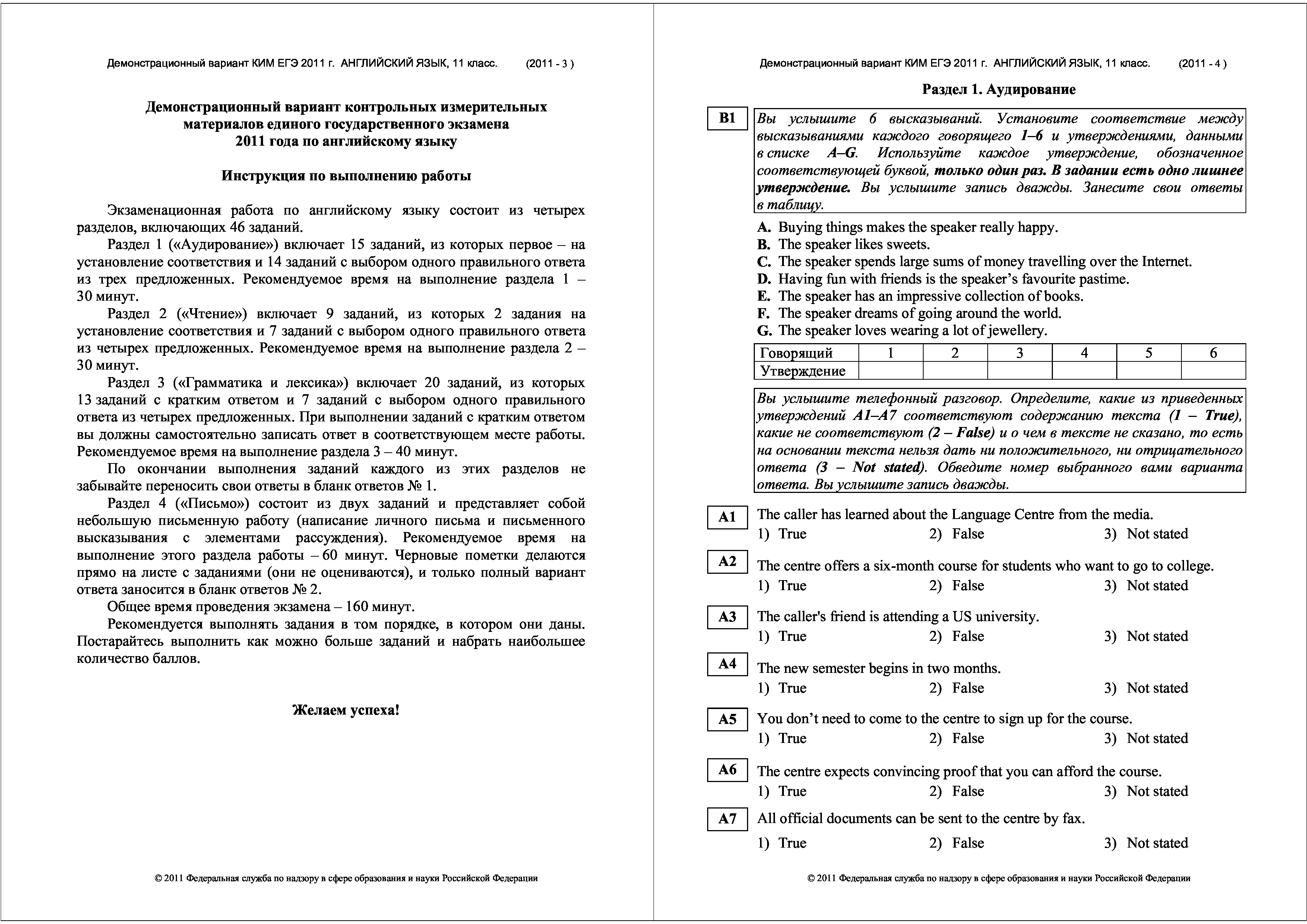 "Демонстрационный вариант ЕГЭ 2011 г. Английский язык" - читать интересную книгу автора (Федеральный институт педагогических...) |