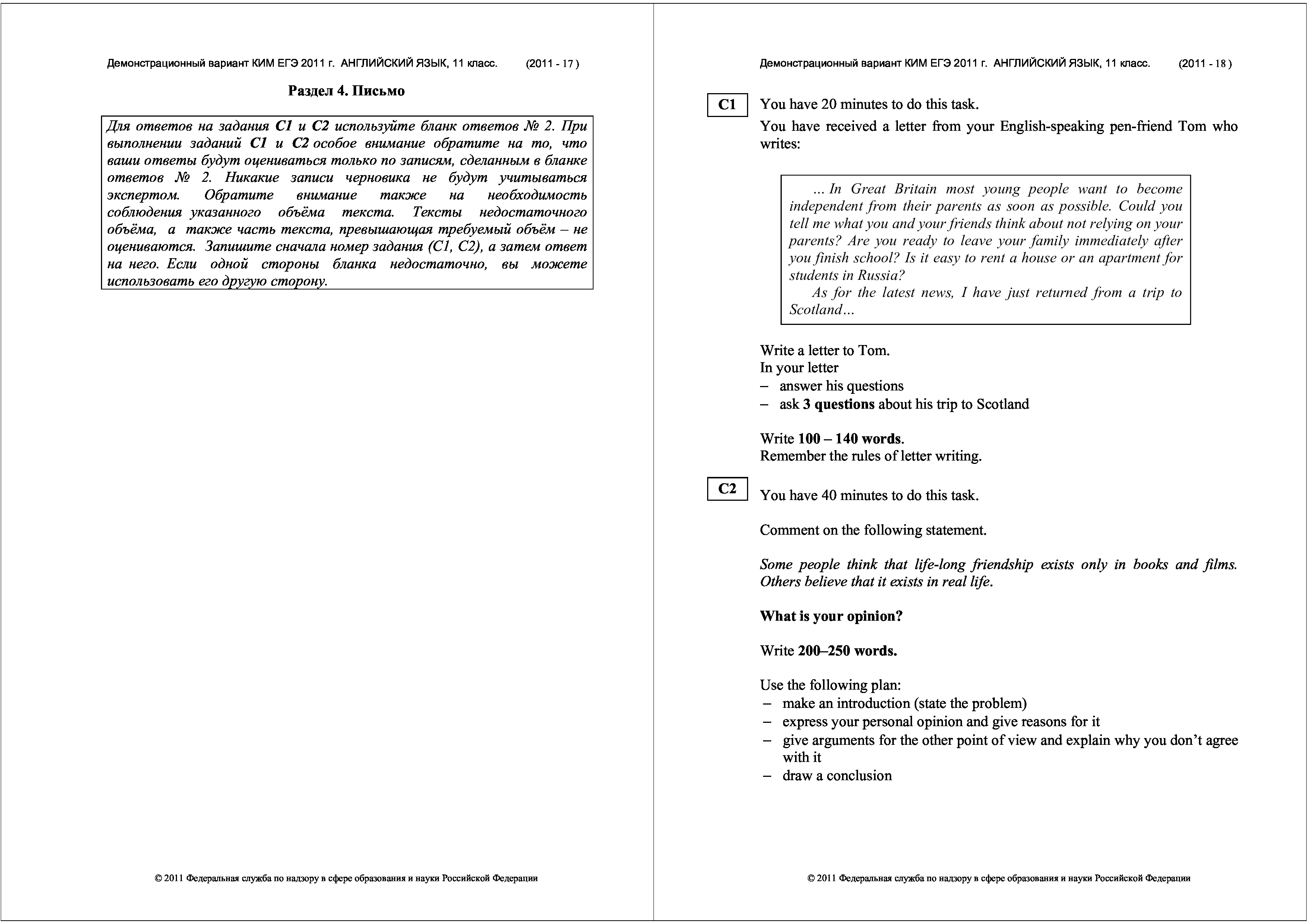 "Демонстрационный вариант ЕГЭ 2011 г. Английский язык" - читать интересную книгу автора (Федеральный институт педагогических...) |