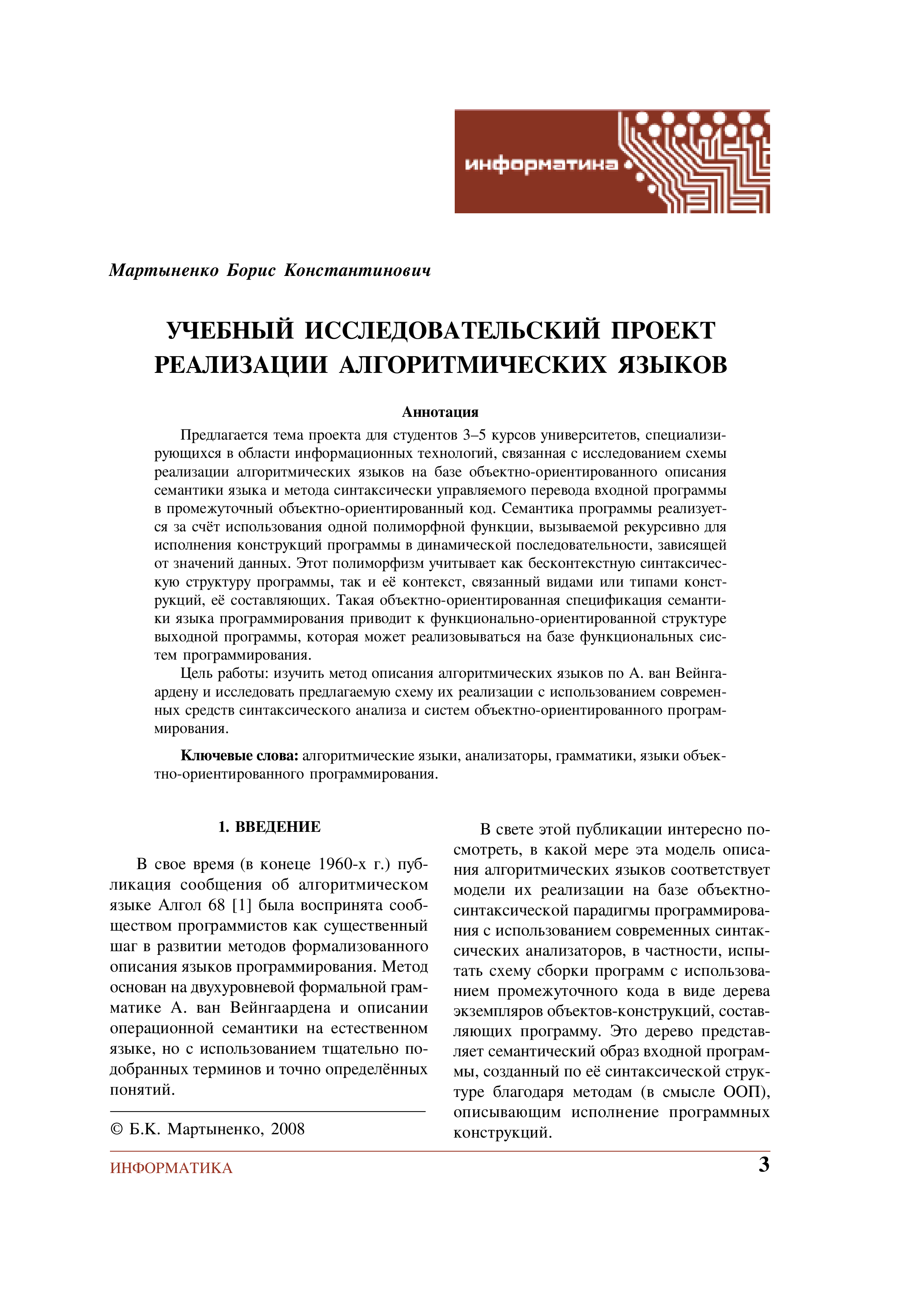 "Учебный исследовательский проект реализации алгоритмических языков" - читать интересную книгу автора (Мартыненко Б.К.) |