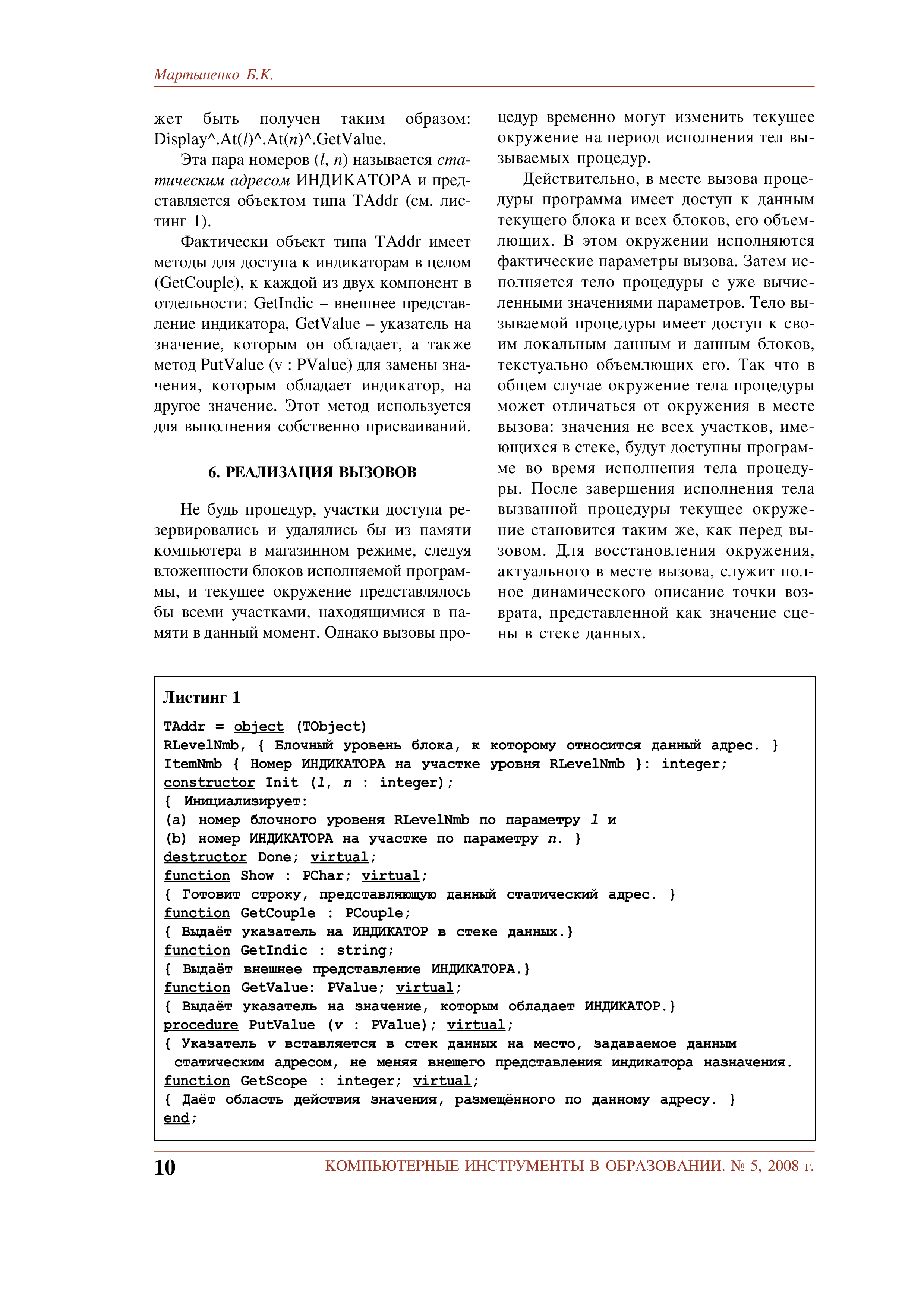 "Учебный исследовательский проект реализации алгоритмических языков" - читать интересную книгу автора (Мартыненко Б.К.) |