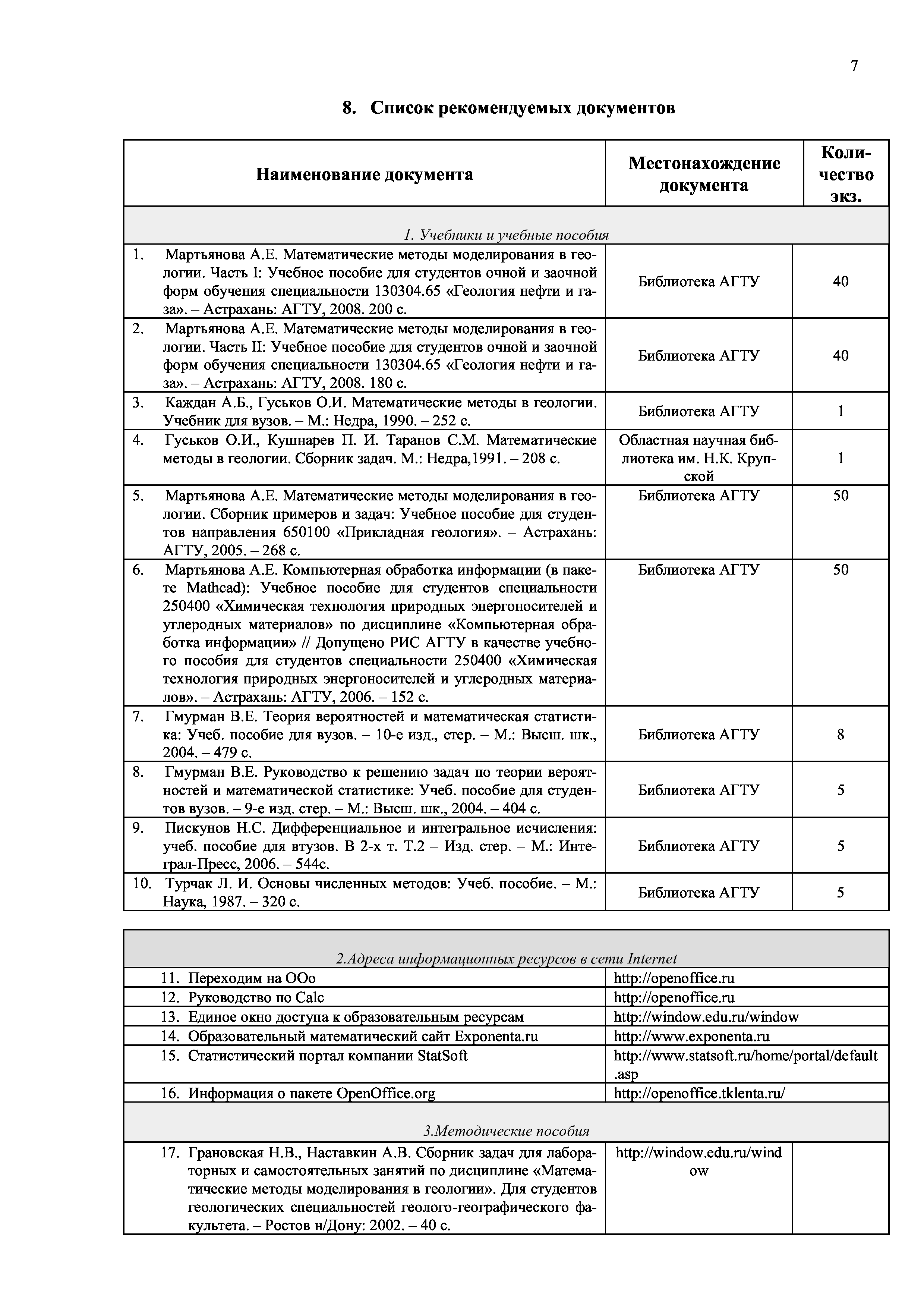 "Математические методы в геологии: Рабочая программа дисциплины" - читать интересную книгу автора (Мартьянова А.Е.)