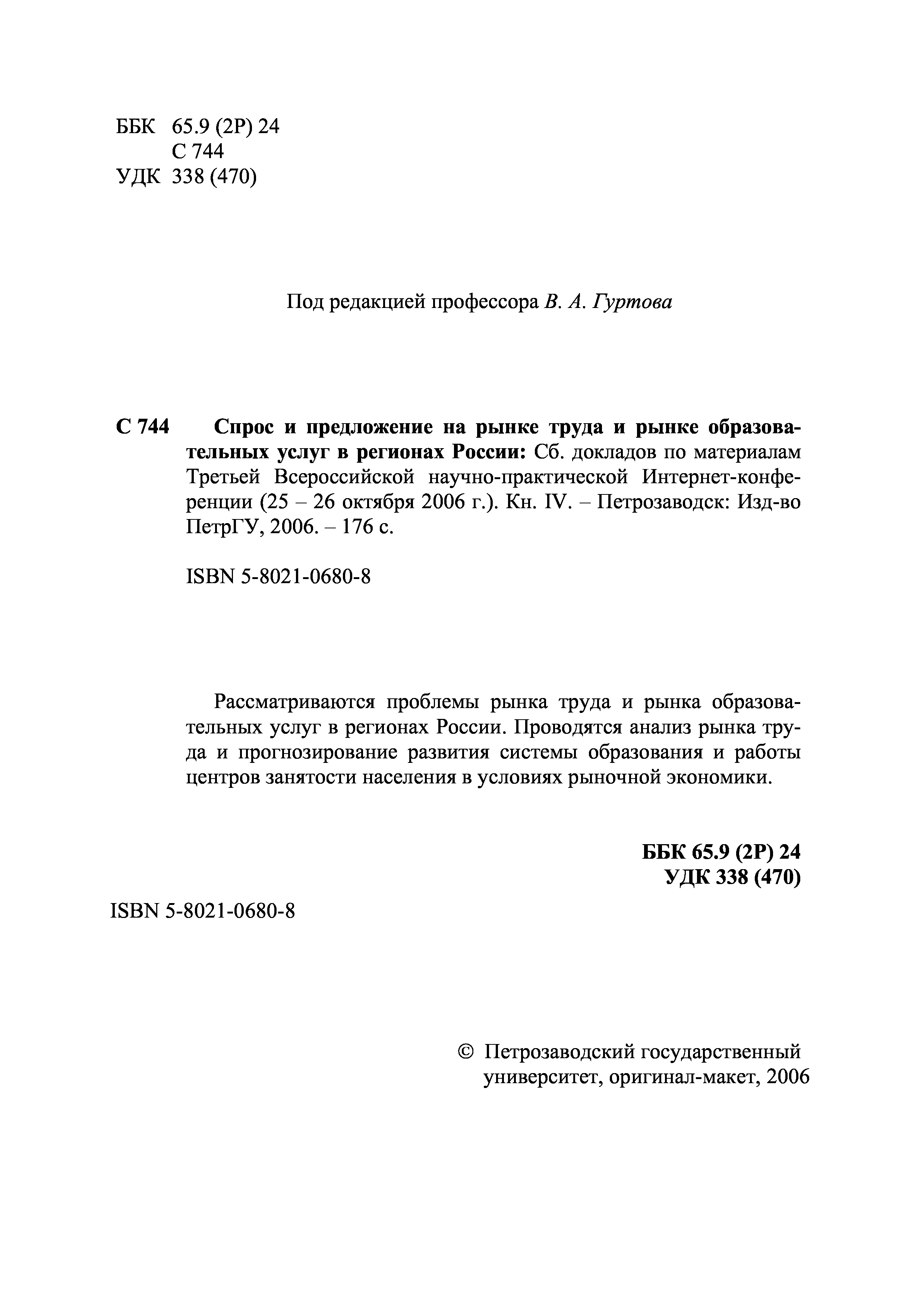 "Спрос и предложение на рынке труда и рынке образовательных услуг в регионах России (2006): Сборник докладов. Книга IV" - читать интересную книгу автора |