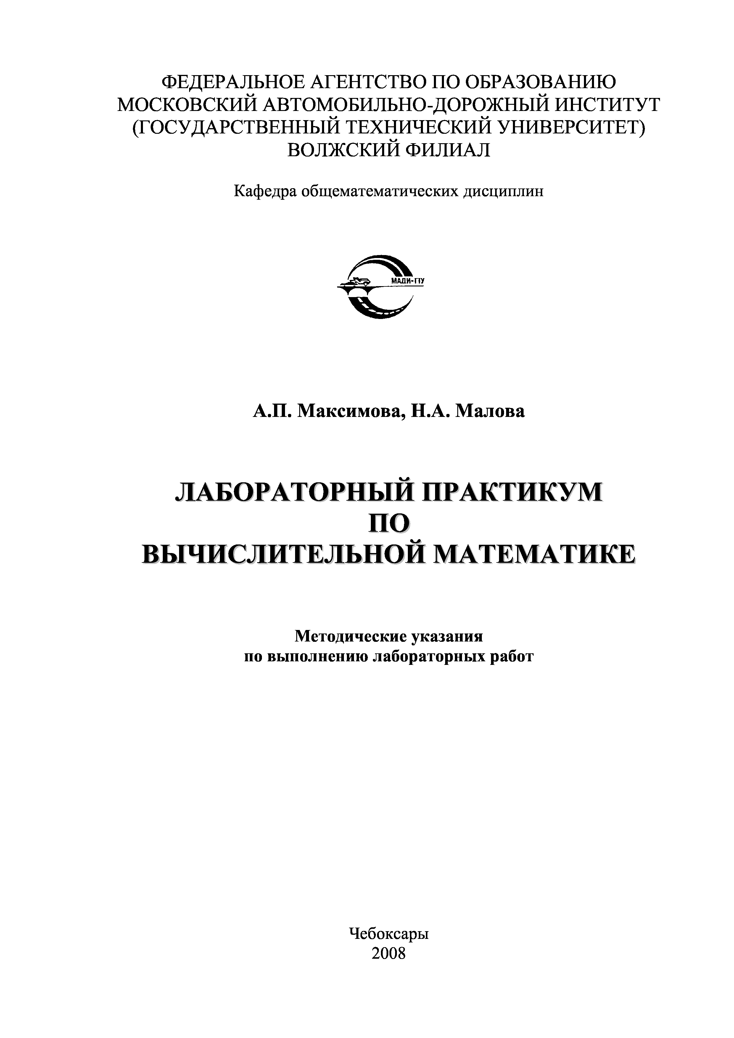 "Лабораторный практикум по вычислительной математике: Методические указания по выполнению лабораторных работ" - читать интересную книгу автора (Максимова А.П., Малова Н.А.) |