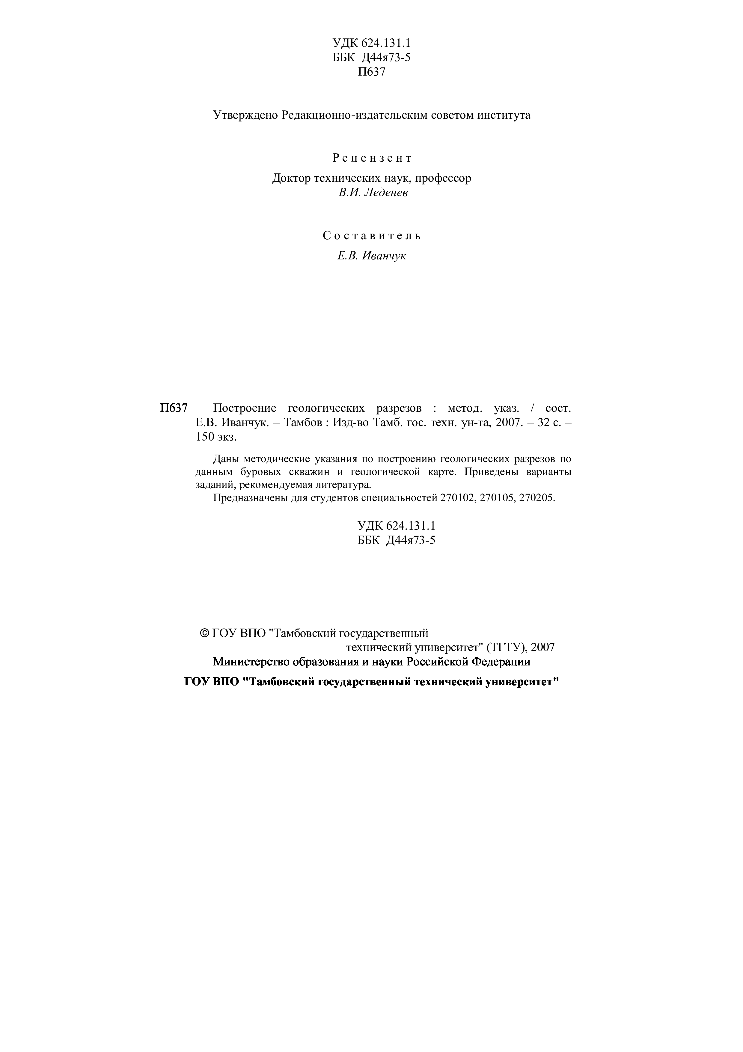 "Построение геологических разрезов: Методические указания" - читать интересную книгу автора (Иванчук Е.В.) |