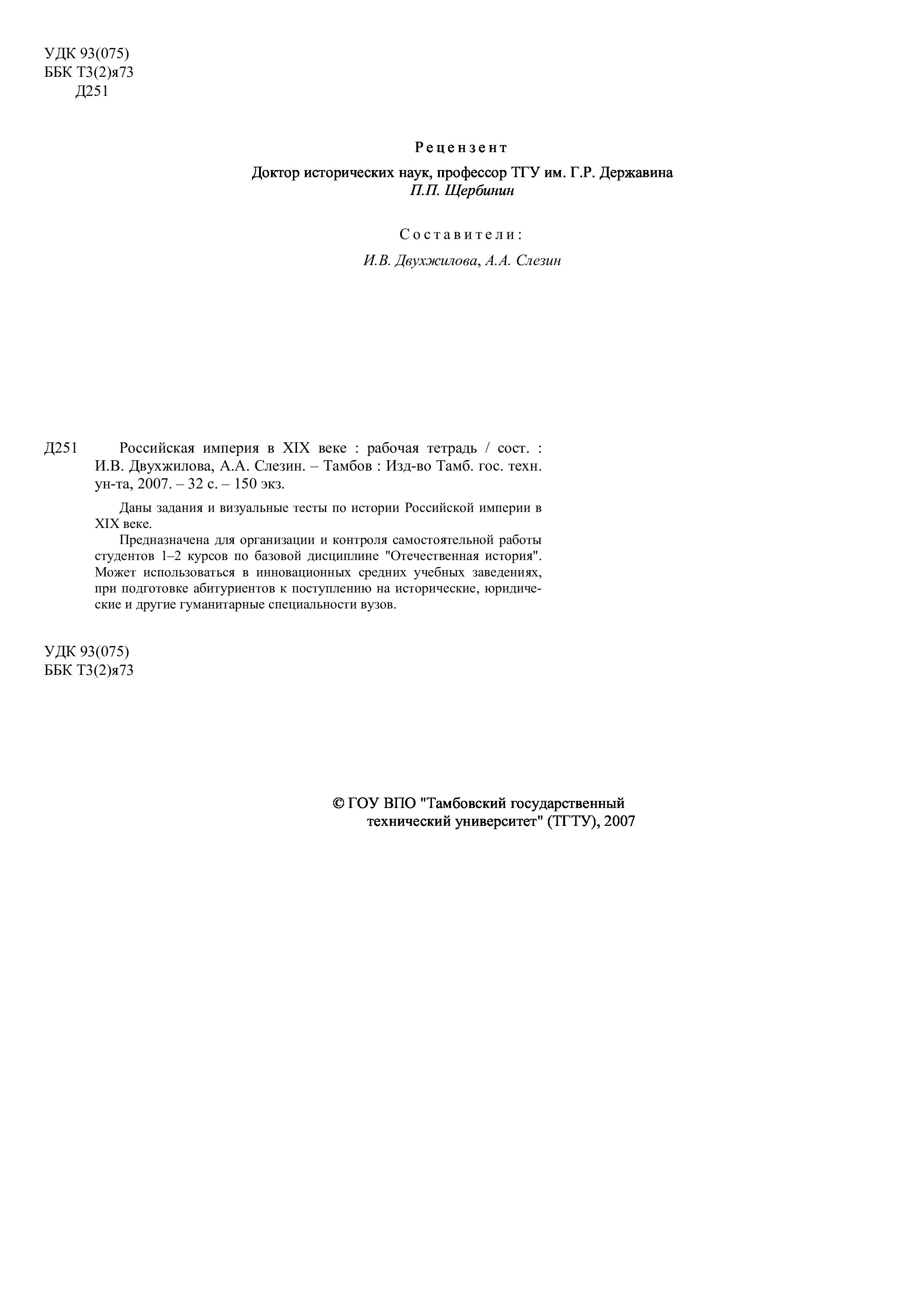 "Российская империя в ХIХ веке: Рабочая тетрадь" - читать интересную книгу автора (Двухжилова И.В., Слезин А.А.) |