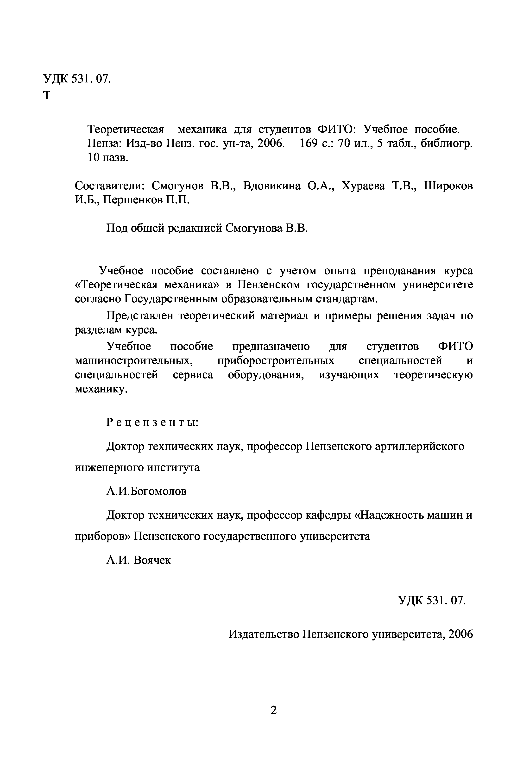 "Теоретическая механика для студентов ФИТО: Учебное пособие" - читать интересную книгу автора (Смогунов В.В., Вдовикина О.А., Хураева Т.В.,...) |