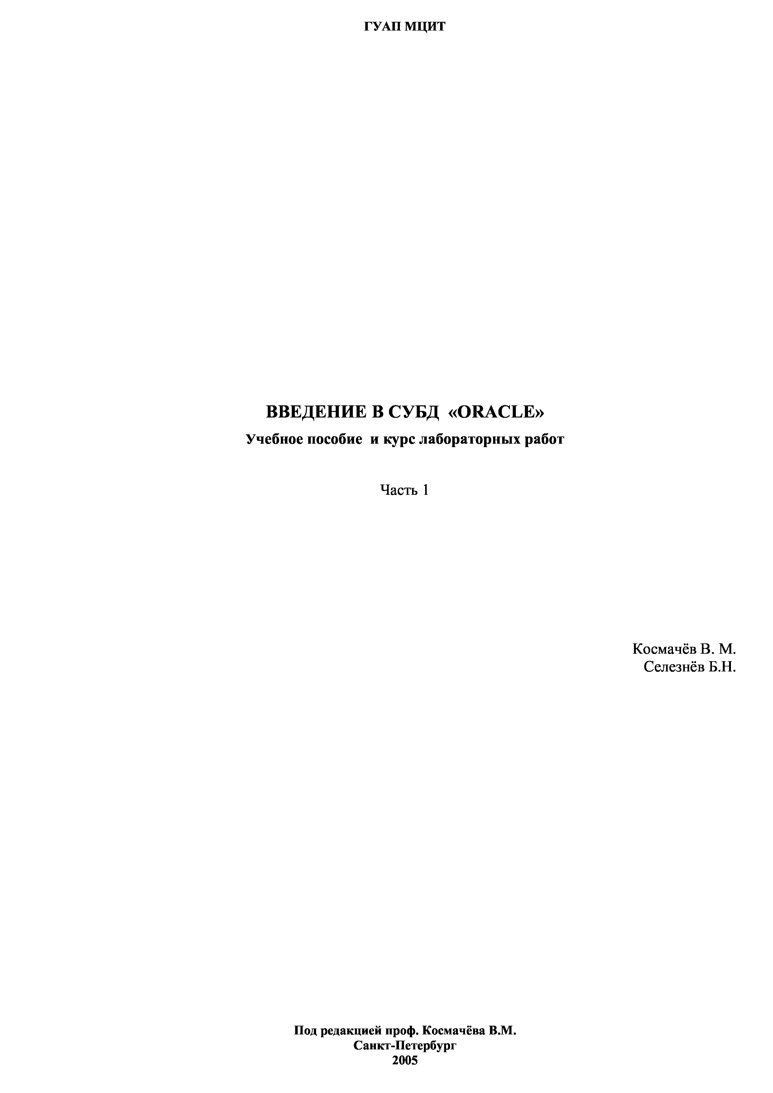 "Введение в СУБД ''Oracle'': Учебное пособие и курс лабораторных работ" - читать интересную книгу автора (Космачев В.М., Селезнев Б.Н.) |