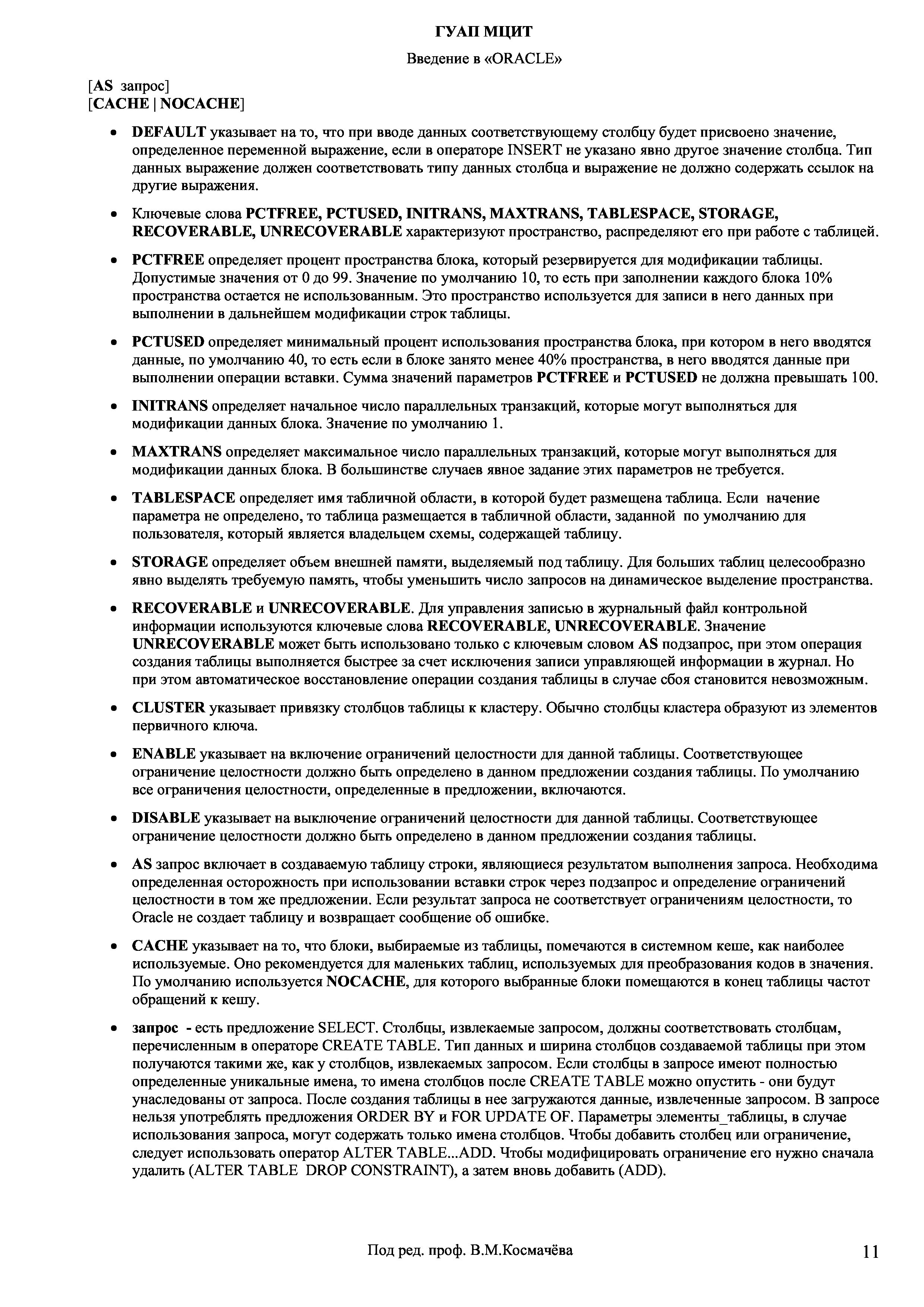 "Введение в СУБД ''Oracle'': Учебное пособие и курс лабораторных работ" - читать интересную книгу автора (Космачев В.М., Селезнев Б.Н.) |