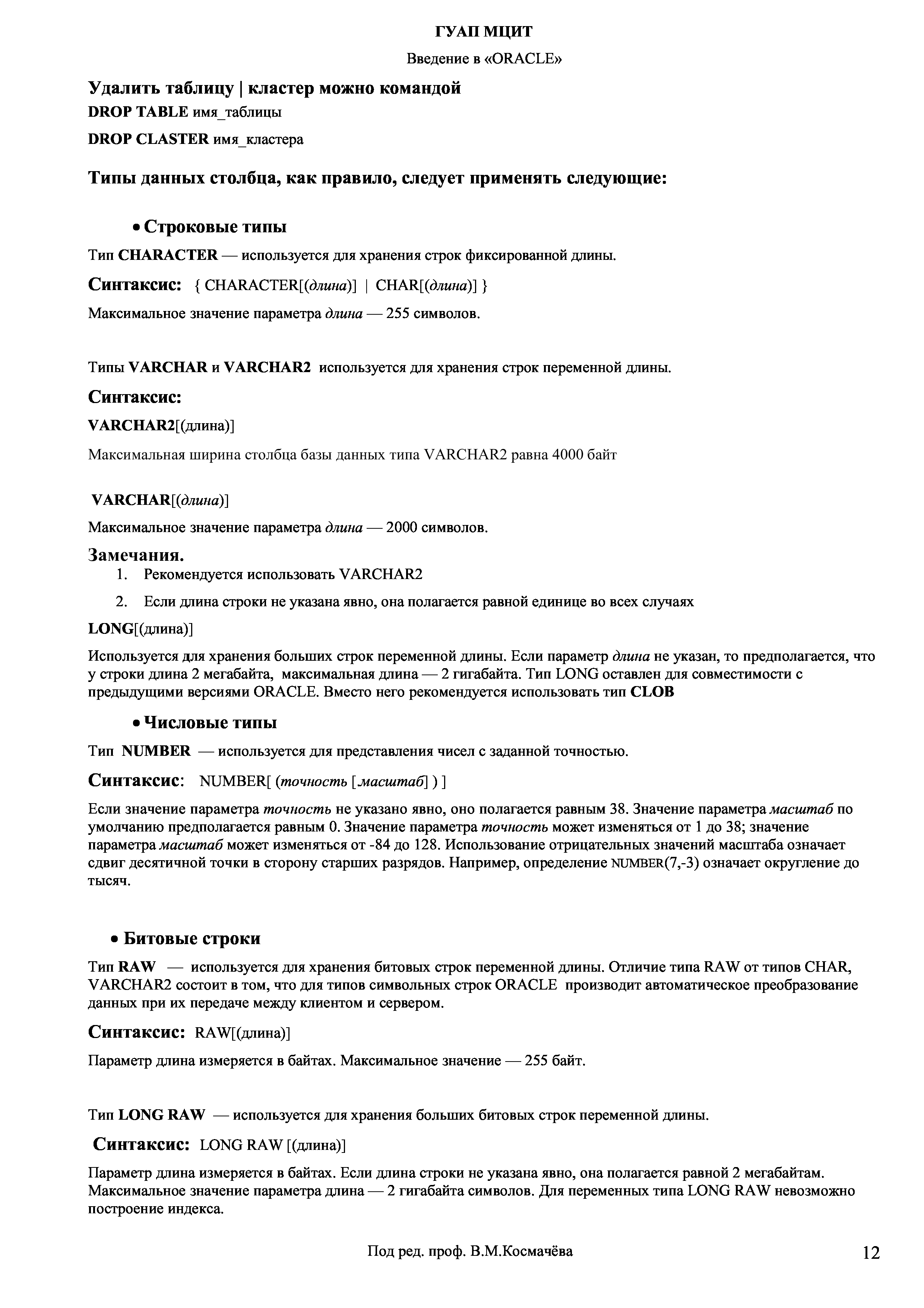 "Введение в СУБД ''Oracle'': Учебное пособие и курс лабораторных работ" - читать интересную книгу автора (Космачев В.М., Селезнев Б.Н.) |