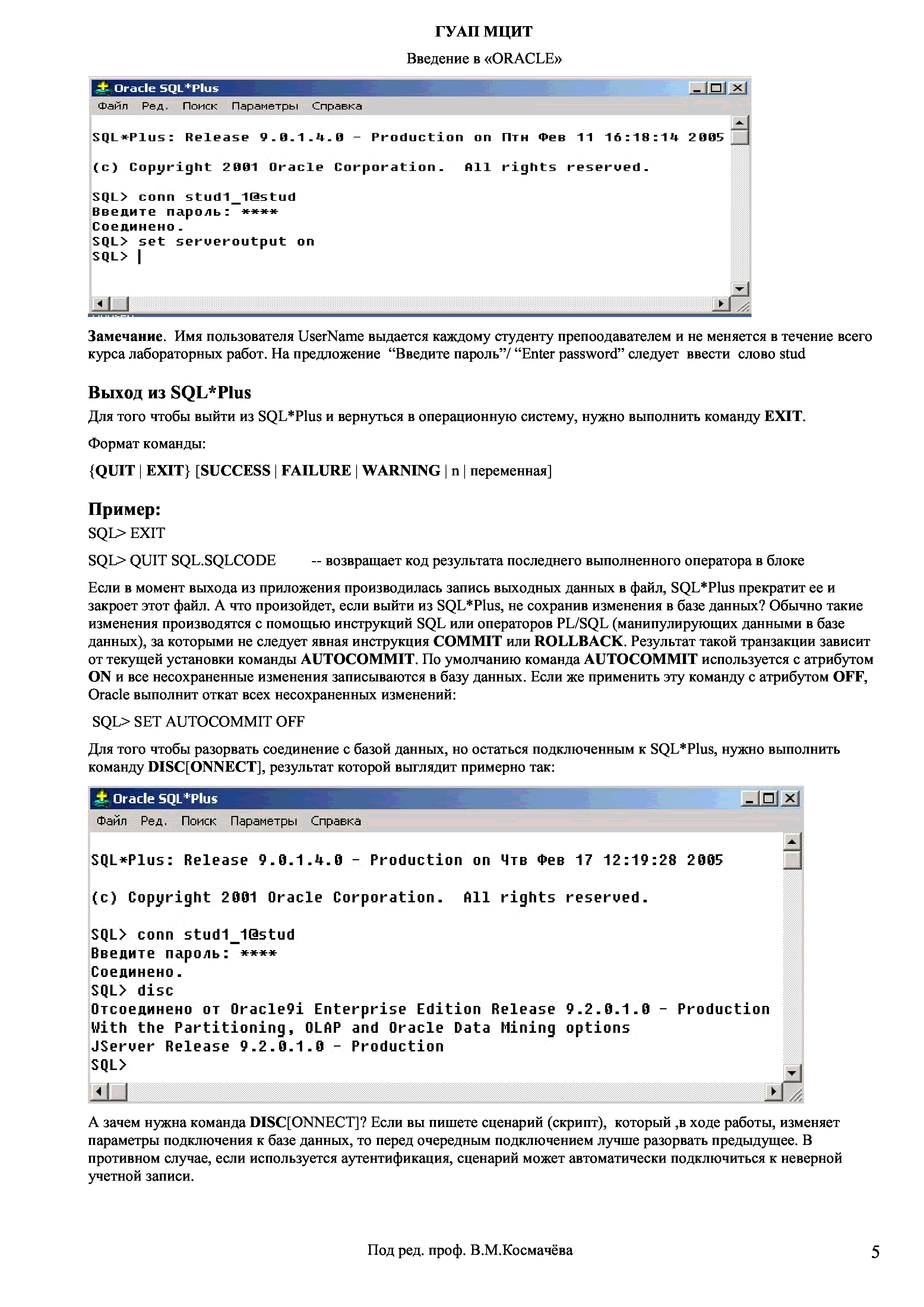 "Введение в СУБД ''Oracle'': Учебное пособие и курс лабораторных работ" - читать интересную книгу автора (Космачев В.М., Селезнев Б.Н.) |