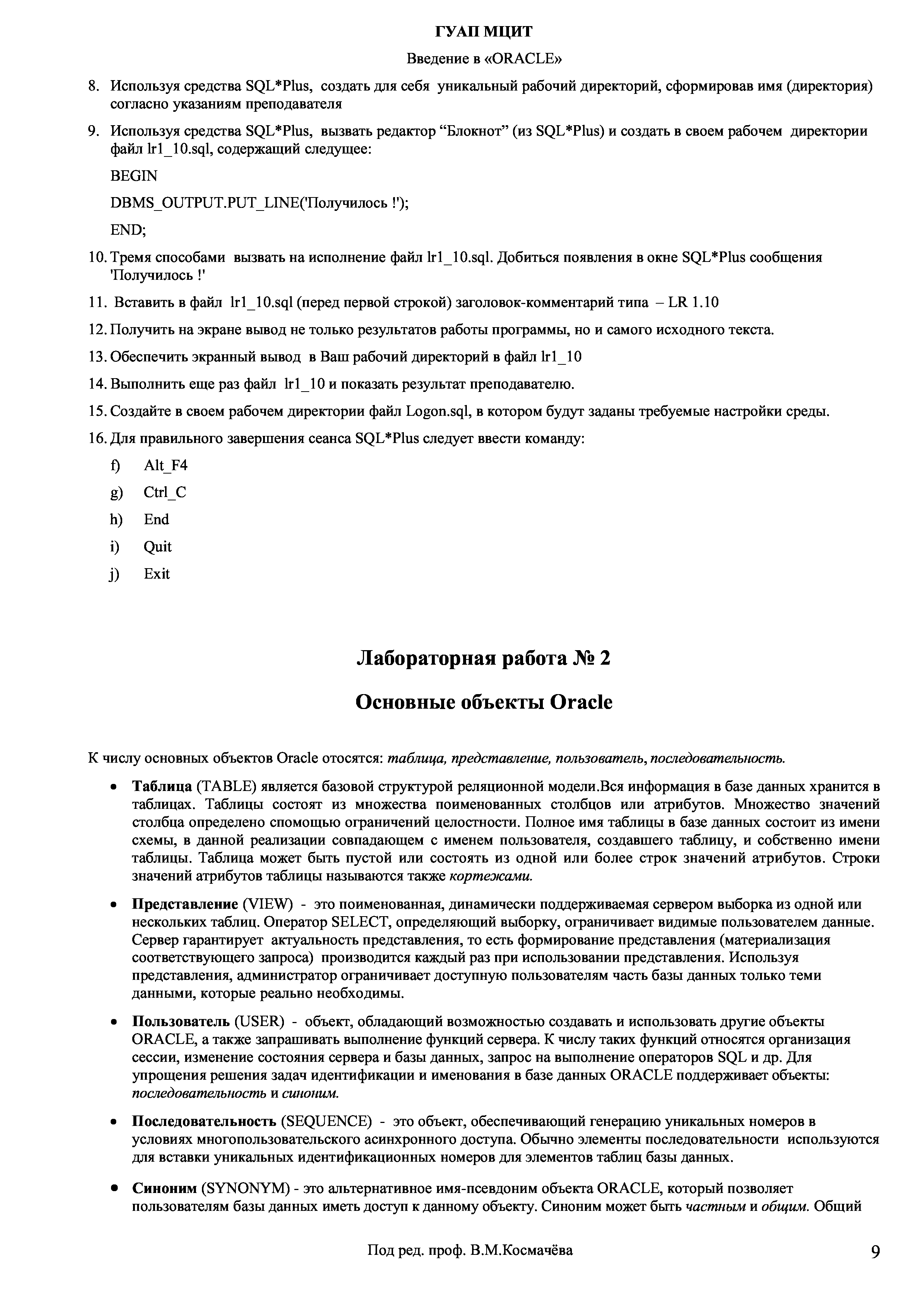 "Введение в СУБД ''Oracle'': Учебное пособие и курс лабораторных работ" - читать интересную книгу автора (Космачев В.М., Селезнев Б.Н.) |