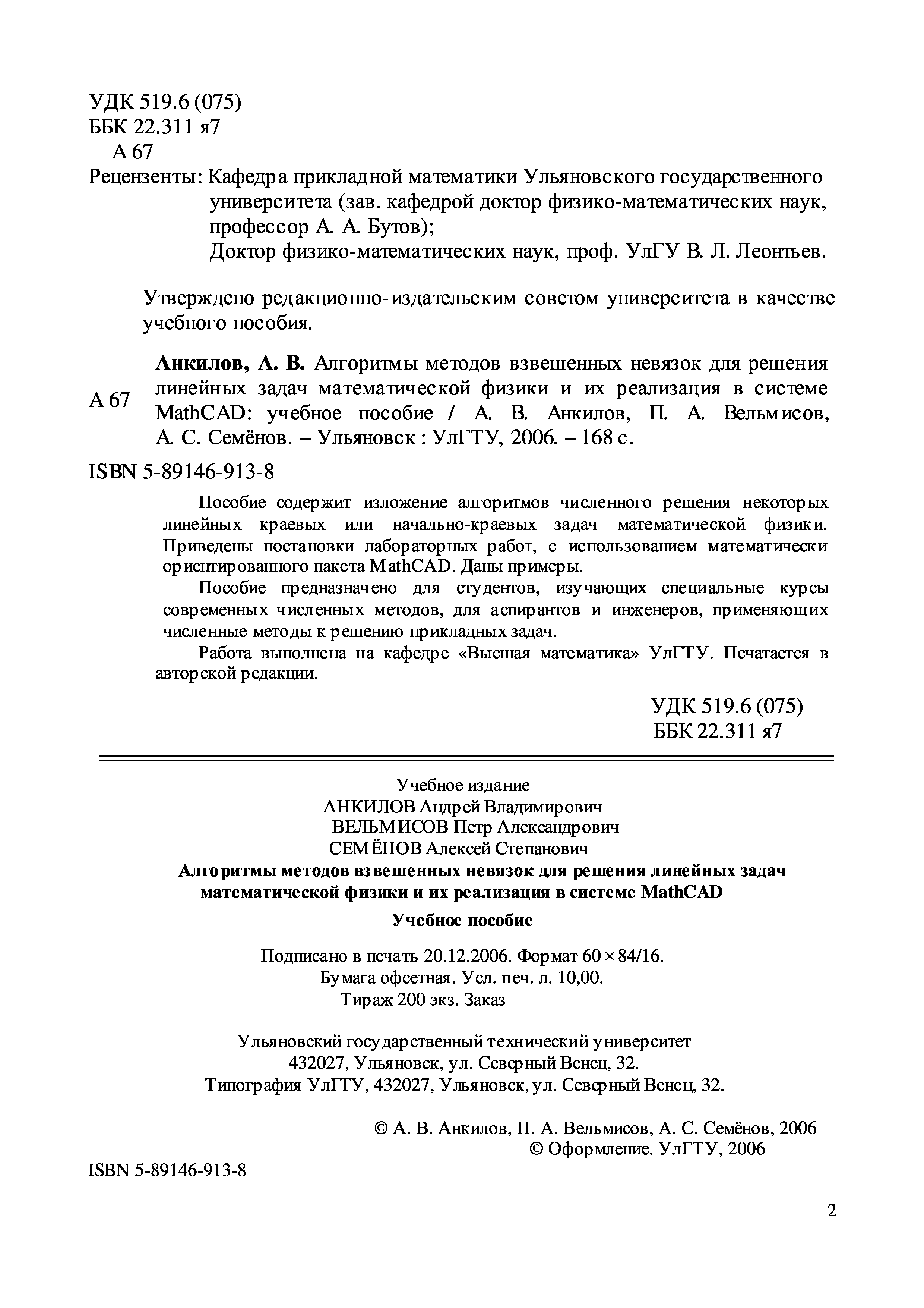 "Алгоритмы методов взвешенных невязок для решения линейных задач математической физики и их реализация в системе MathCAD: Учебное пособие" - читать интересную книгу автора (Анкилов А.В., Вельмисов П.А., Семёнов А.С.) |