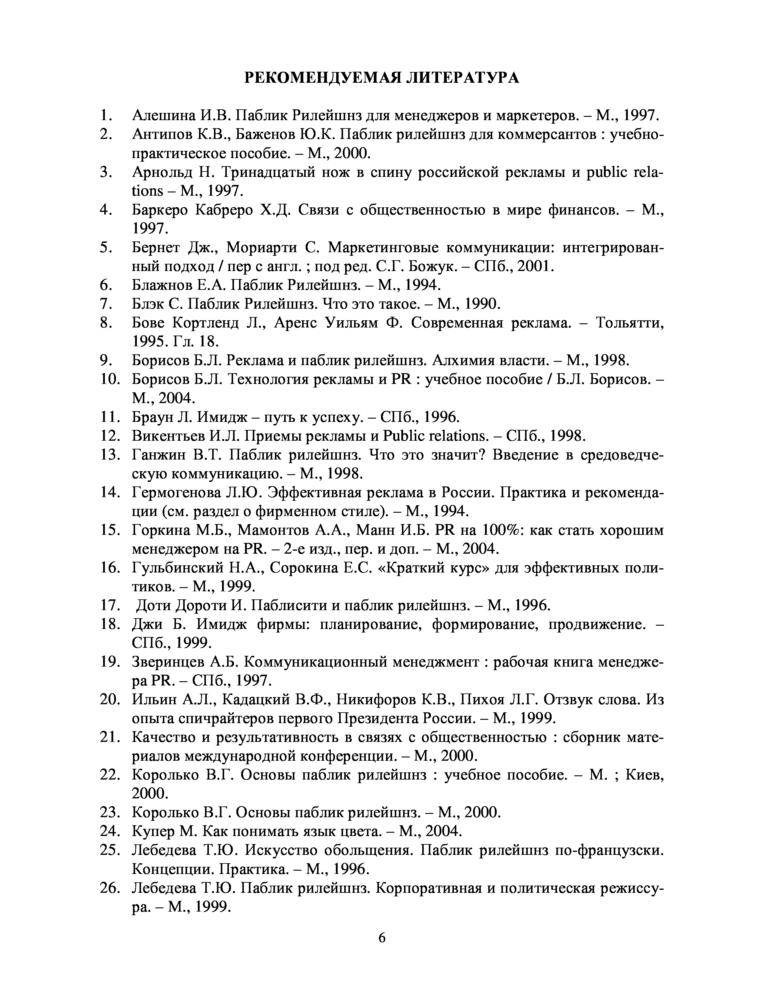 "Управление общественными отношениями (Паблик рилейшнз): Программа курса" - читать интересную книгу автора (Стрижкина И.В.) |