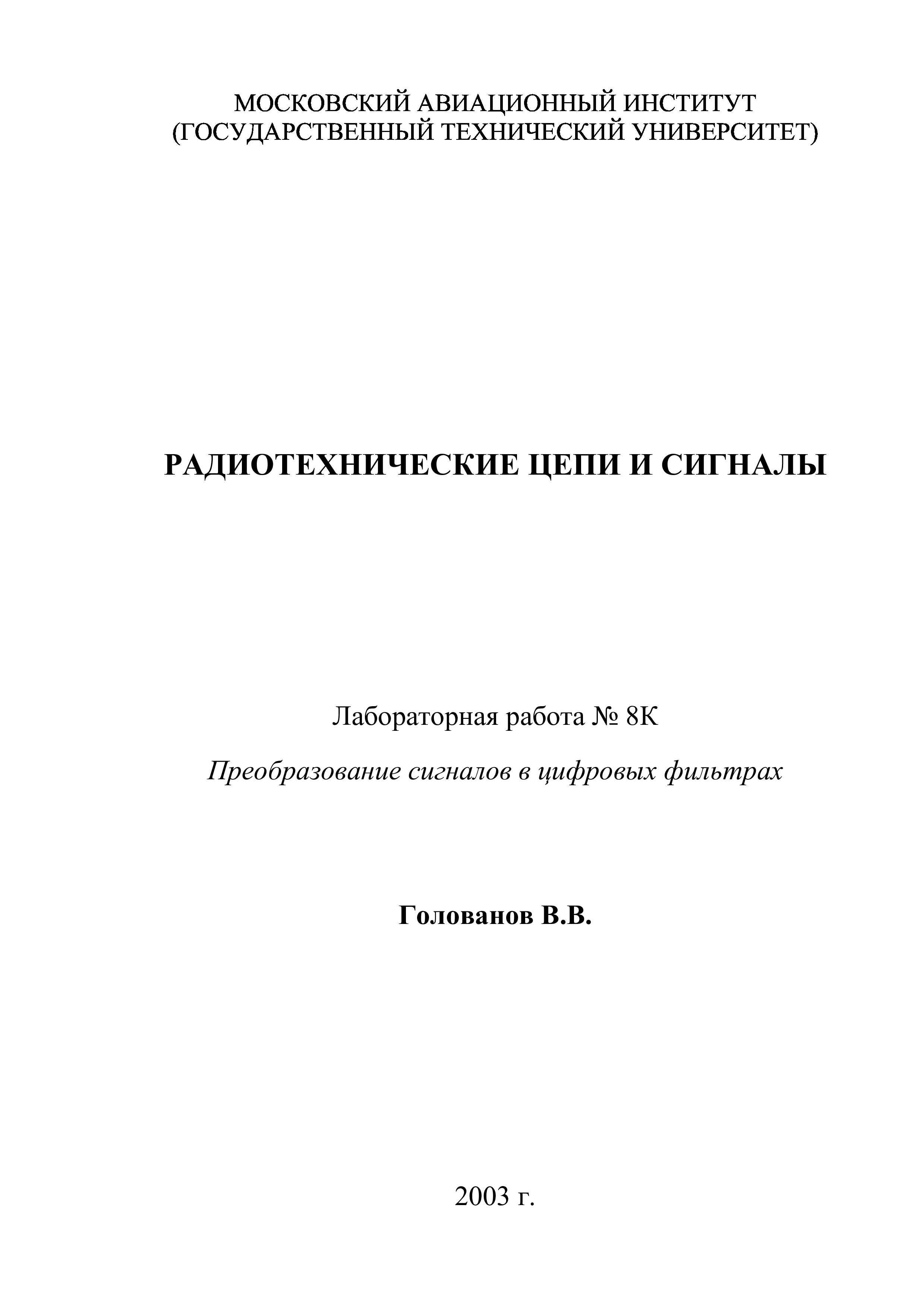"Преобразование дискретных сигналов в цифровых фильтрах: Методические указания к лабораторной работе по курсу ''Радиотехнические цепи и сигналы''" - читать интересную книгу автора (Голованов В.В.) |