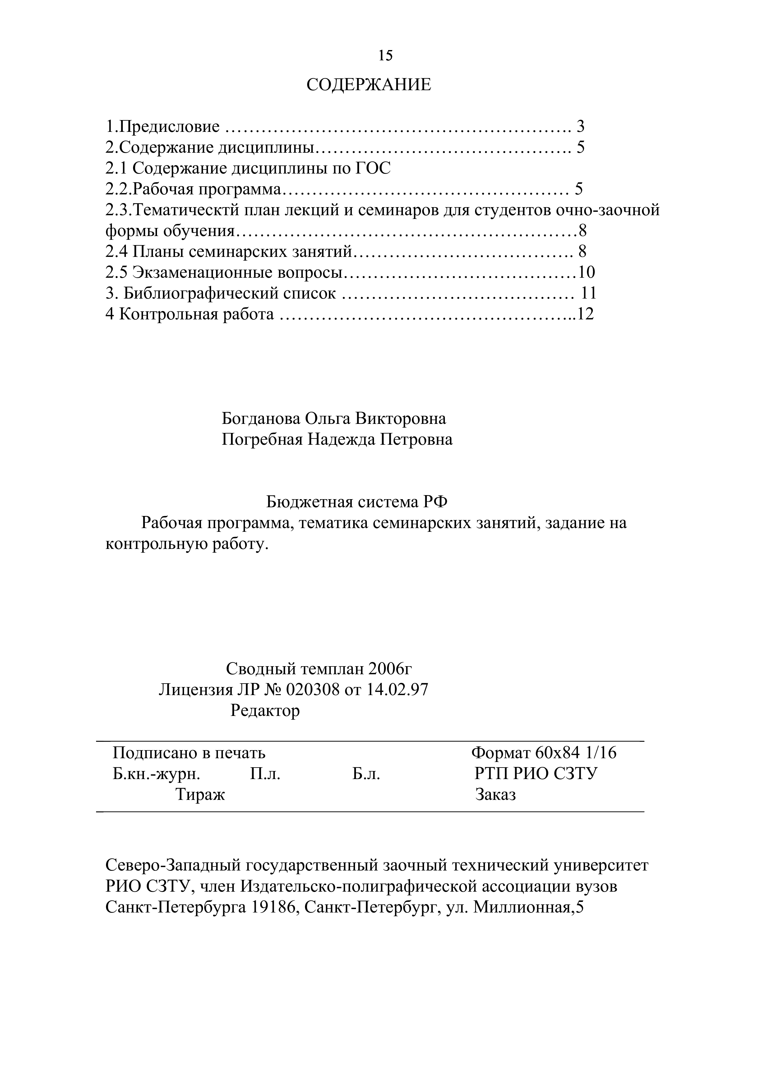 "Бюджетная система РФ: Рабочая программа, методические указания, задание на контрольную работу" - читать интересную книгу автора (Богданова О.В., Погребная Н.П., Козулин В.А.)