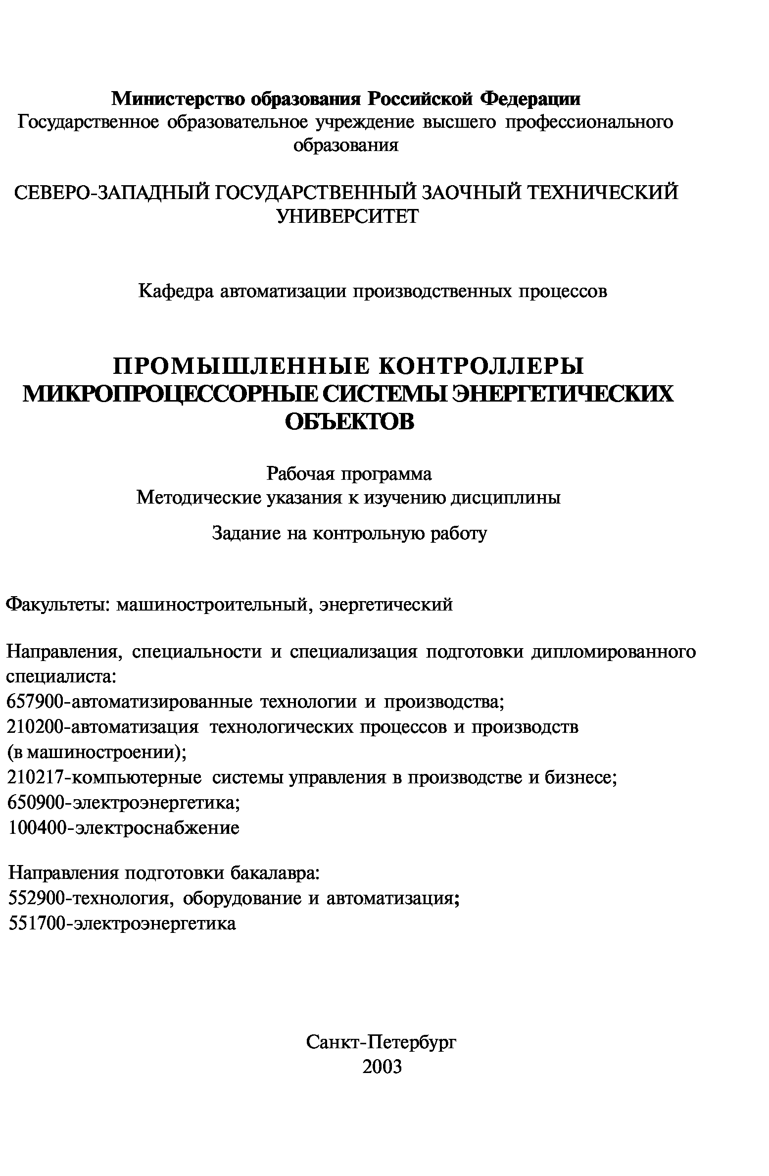 "Промышленные контроллеры, микропроцессорные системы энергетических объектов: Рабочая программа, методические указания к изучению дисциплины, задания на контрольную работу" - читать интересную книгу автора (Готшальк О.А.) |