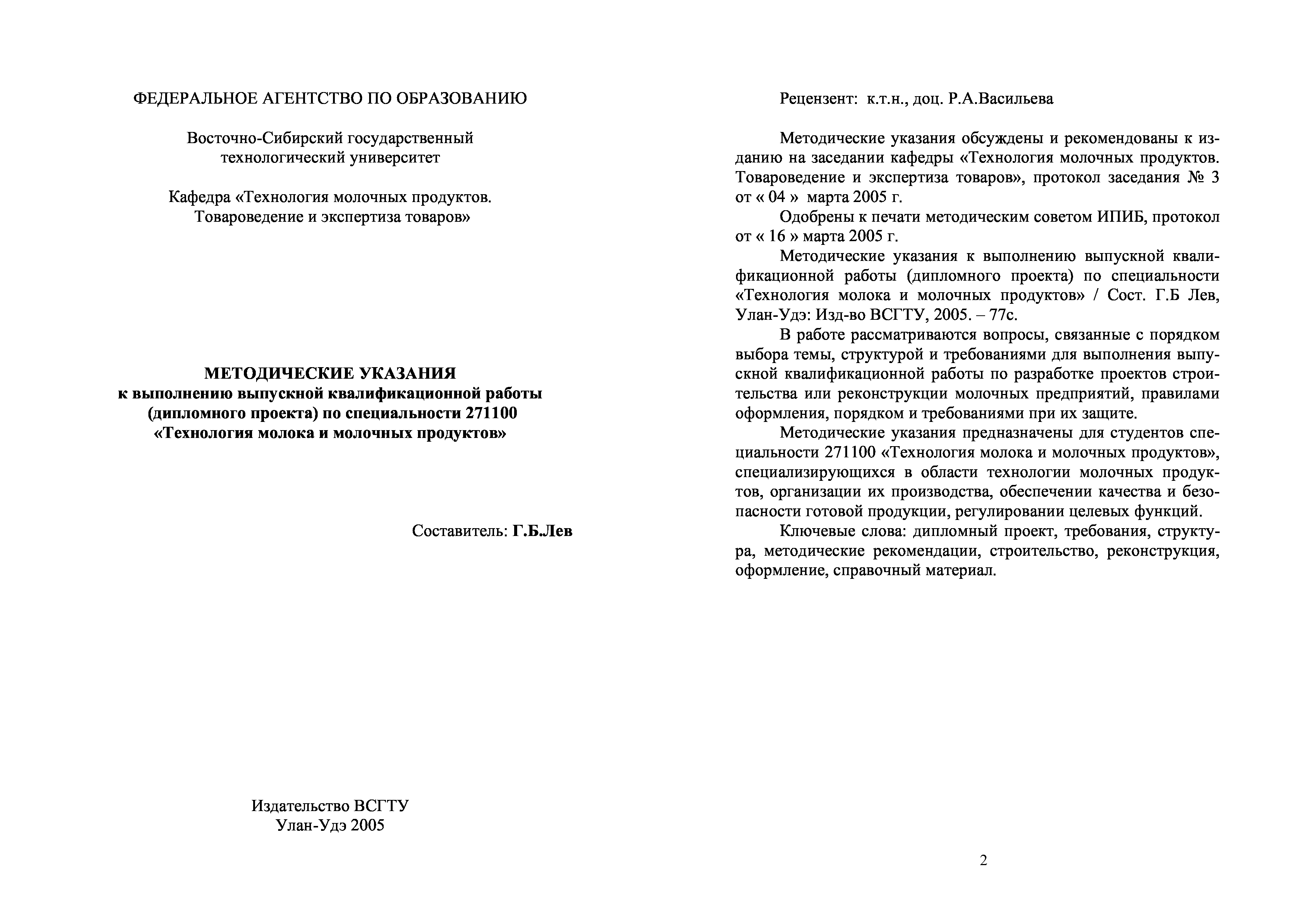"Технология молока и молочных продуктов: Методические указания к выполнению выпускной квалификационной работы (дипломного проекта) по специальности" - читать интересную книгу автора (Лев Г.Б.) |