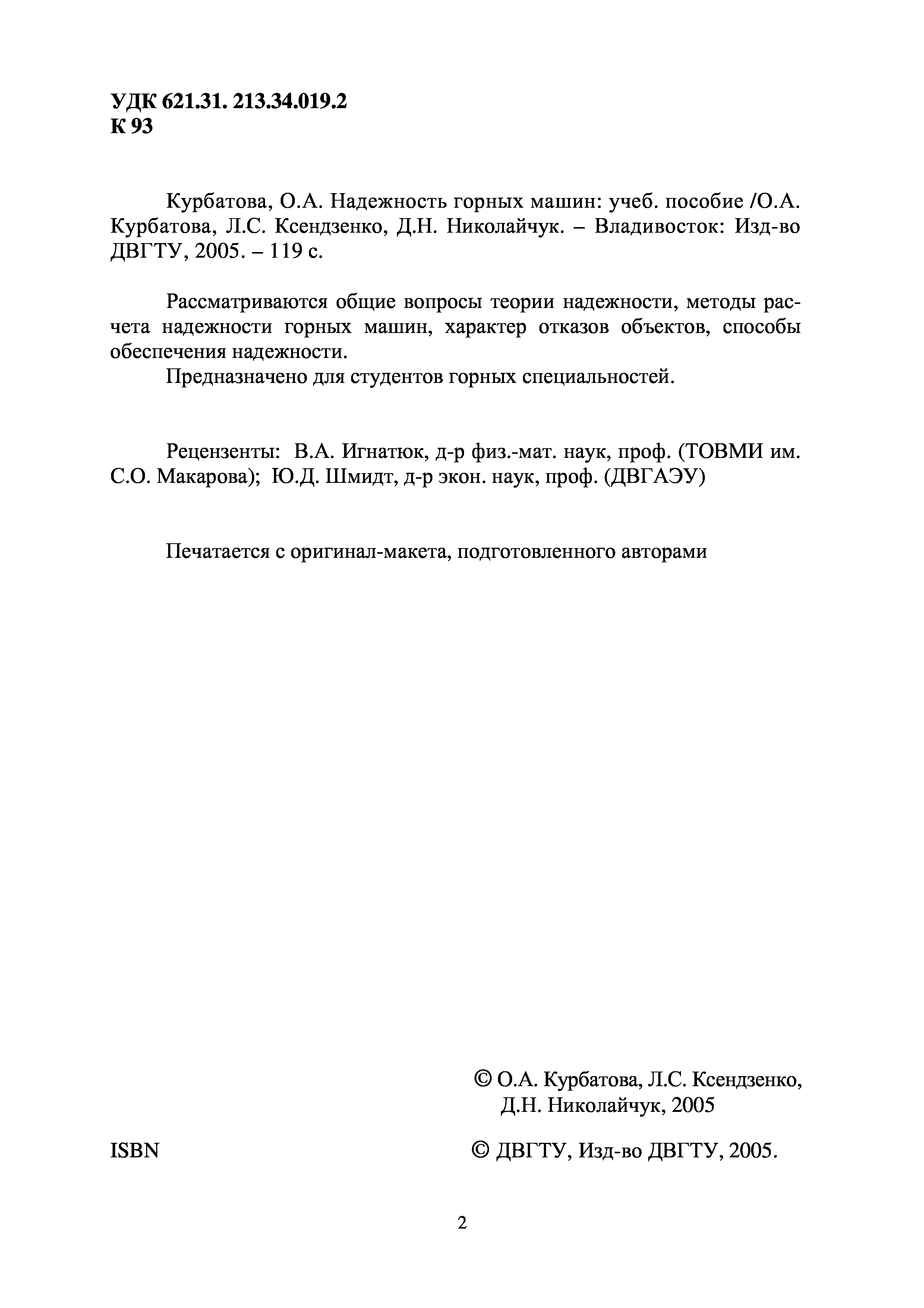 "Надежность горных машин: Учебное пособие" - читать интересную книгу автора (Курбатова О.А., Ксендзенко Л.С., Николайчук...) |