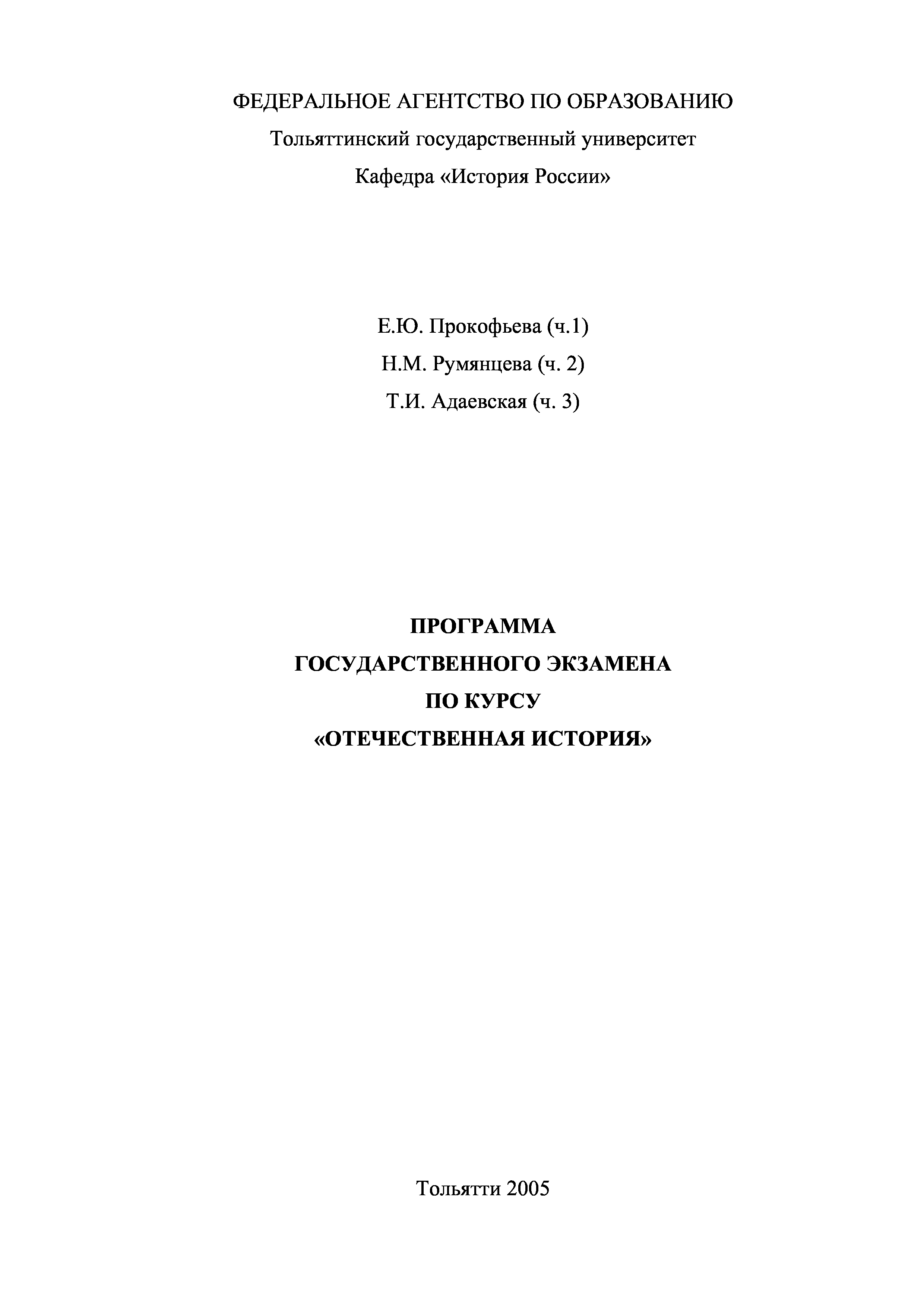"Отечественная история: Программа государственного экзамена по курсу" - читать интересную книгу автора (Прокофьева Е.Ю., Румянцева Н.М., Адаевская...)