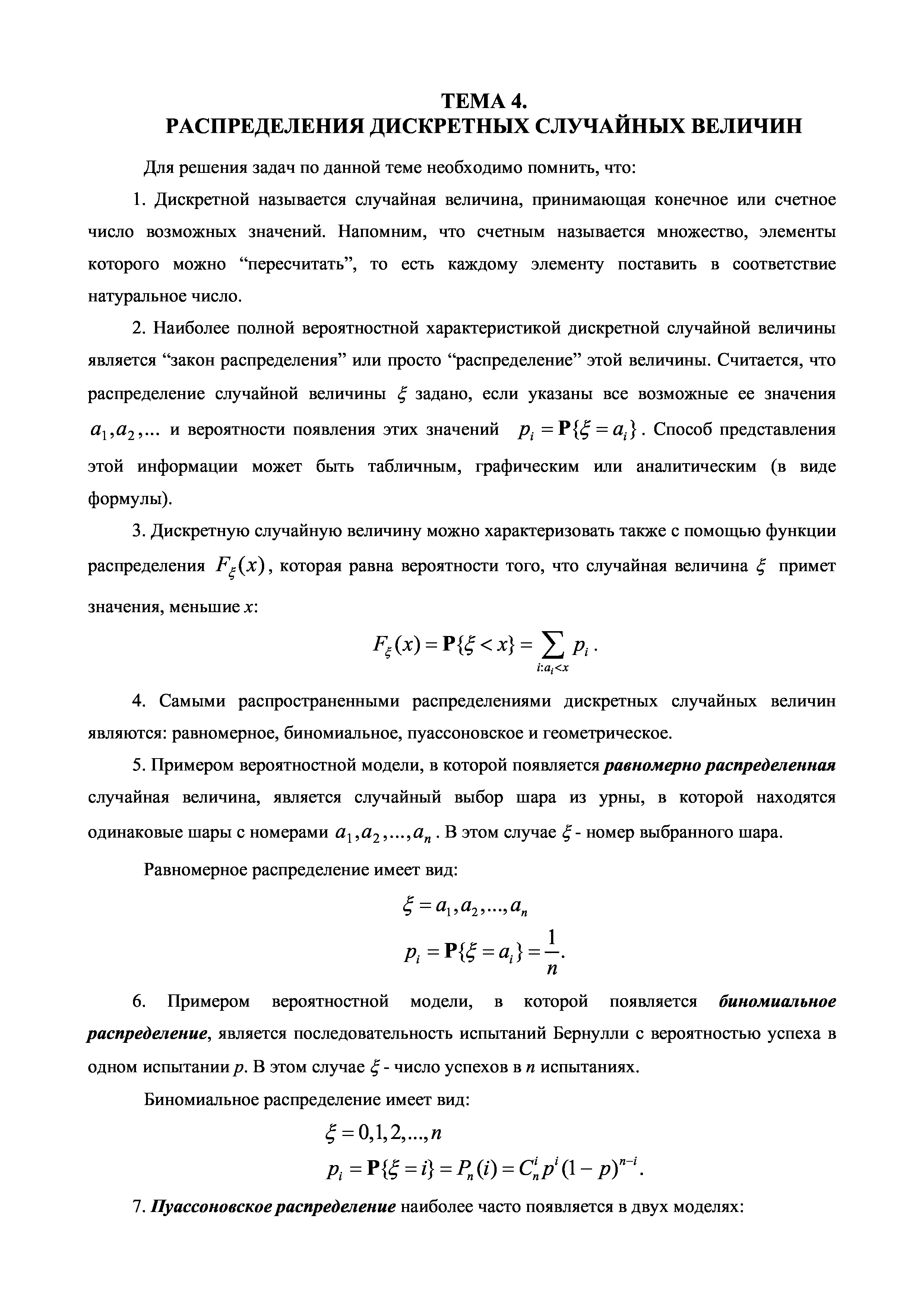 "Основные понятия, формулы и распределения теории вероятностей: Методические указания к практическим занятиям" - читать интересную книгу автора |