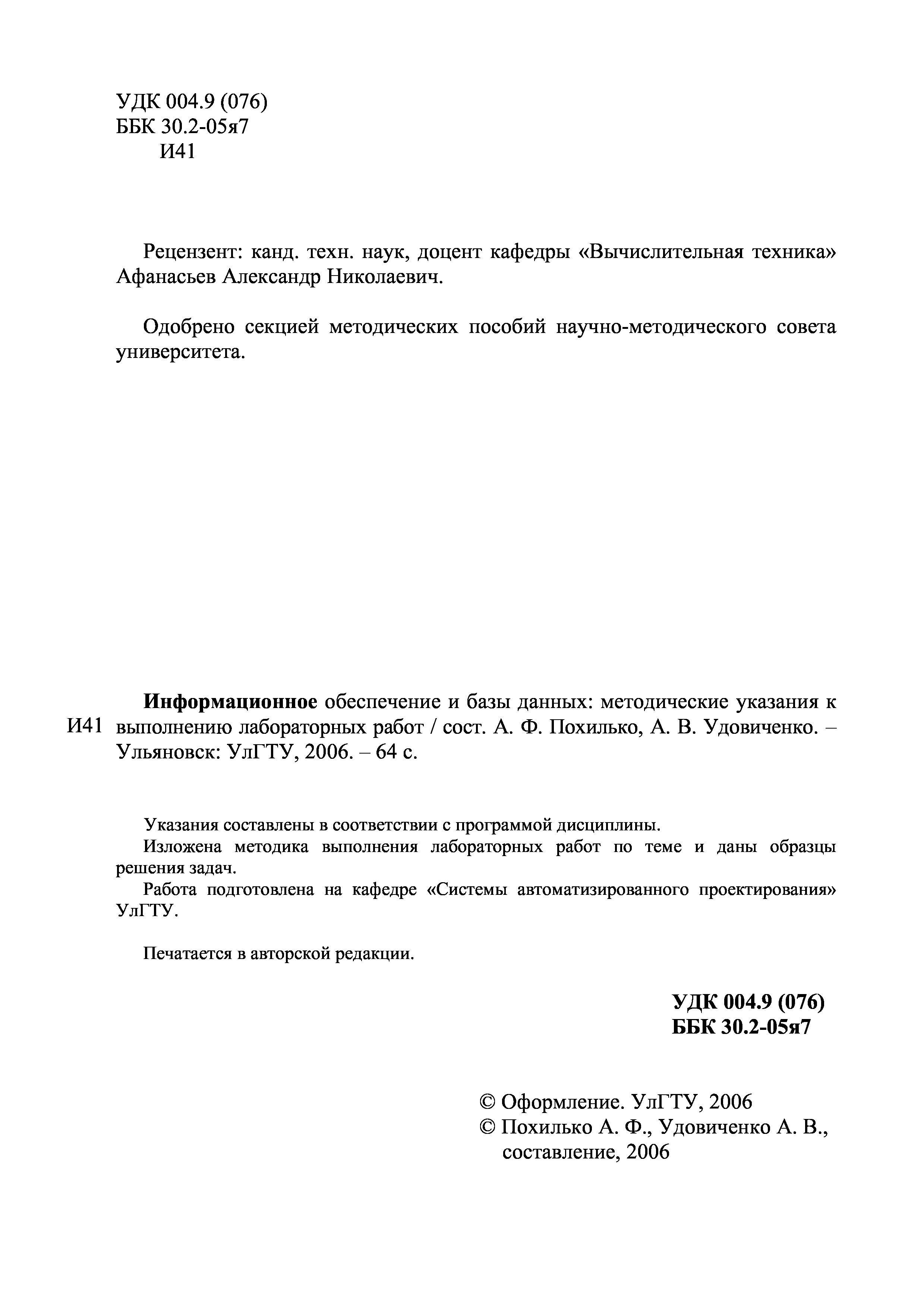 "Информационное обеспечение и базы данных: Методические указания к выполнению лабораторных работ" - читать интересную книгу автора (Похилько А.Ф., Удовиченко А.В.) |