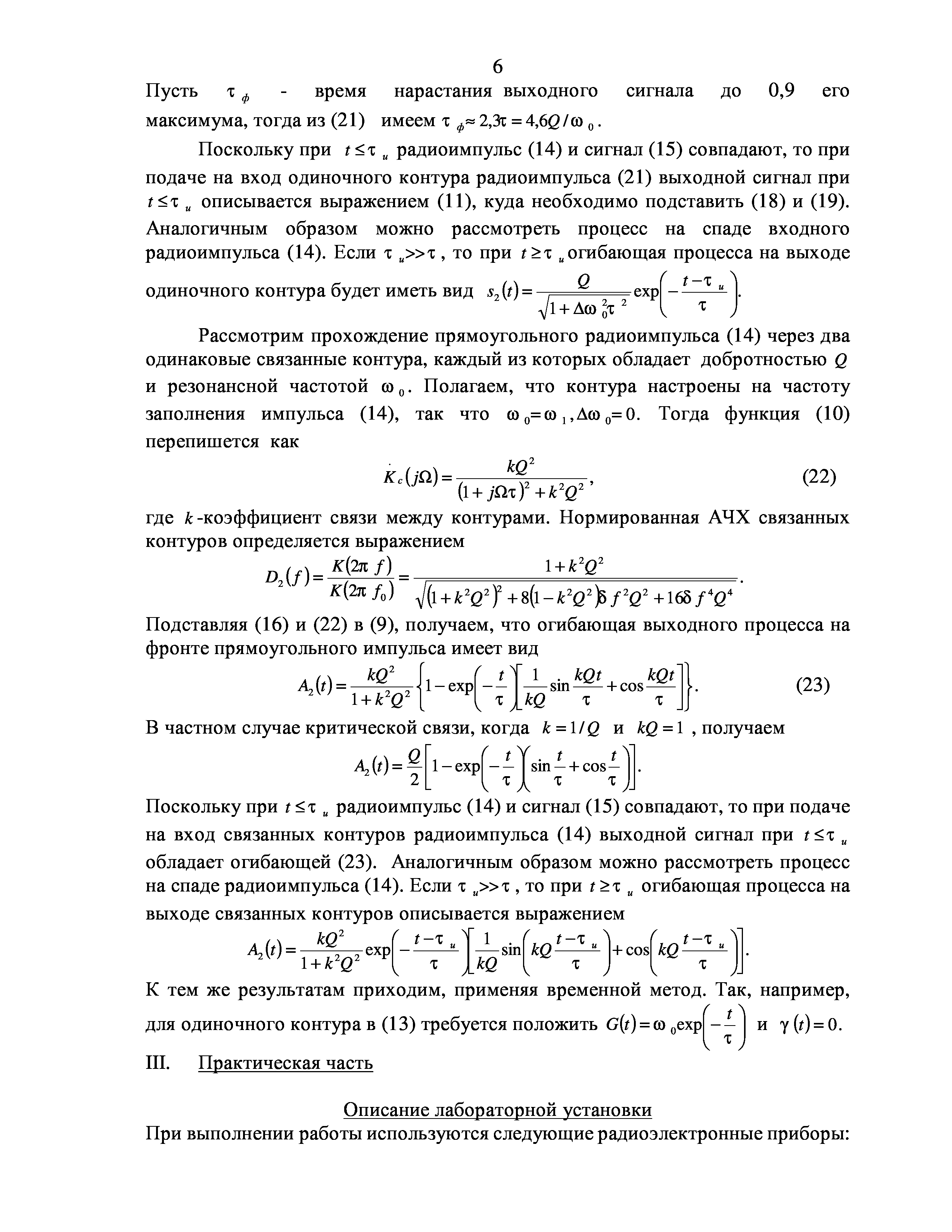 "Радиофизика и электроника: Методические указания по исследованию прохождения радиоимпульсов через избирательные цепи" - читать интересную книгу автора (Беспалова М.Б., Васильев В.А.) |