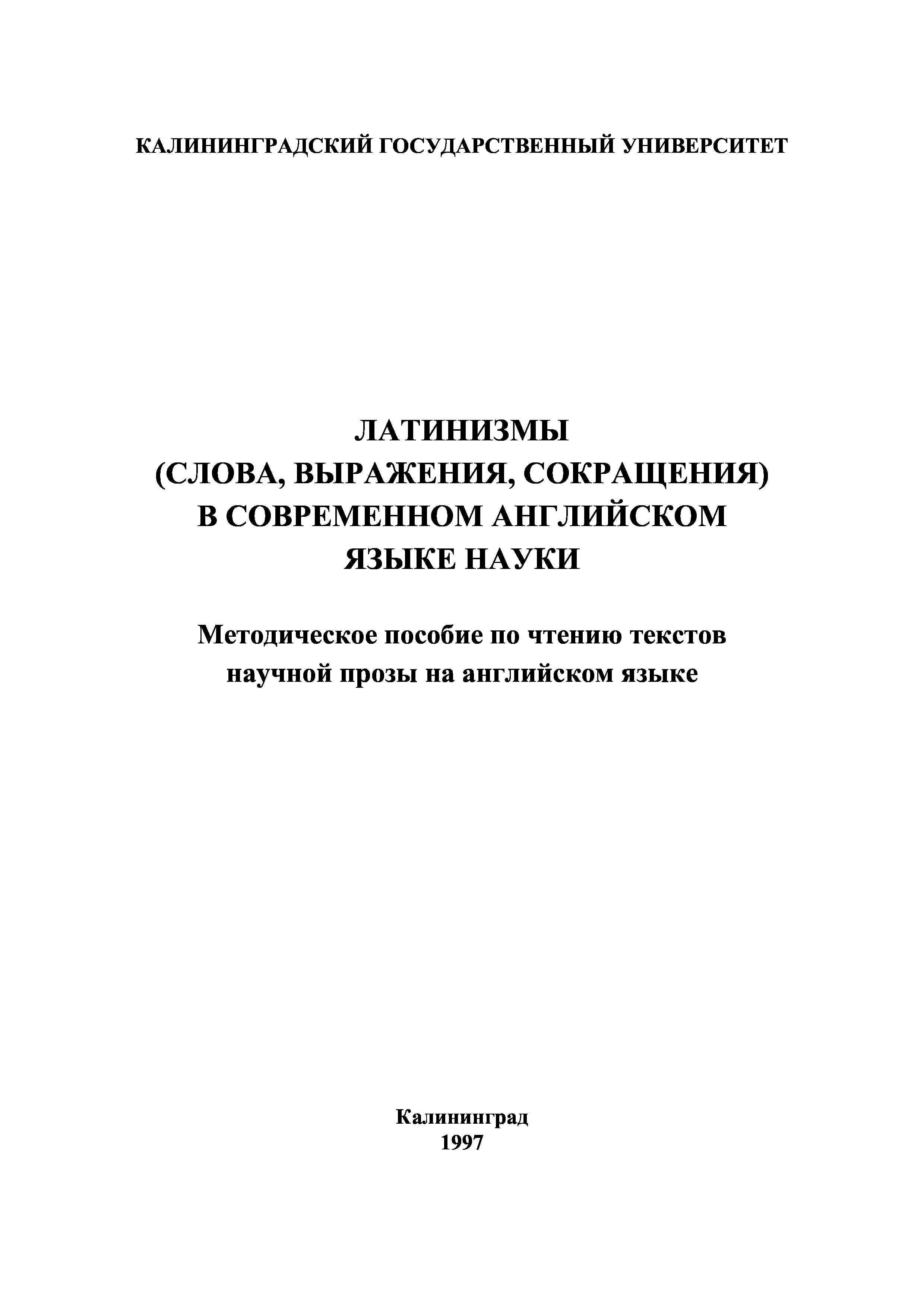 "Латинизмы (слова, выражения, сокращения) в современном английском языке науки: Методическое пособие по чтению текстов научной прозы на английском языке" - читать интересную книгу автора (Аристова В.М., Корсакова Г.Г.) |