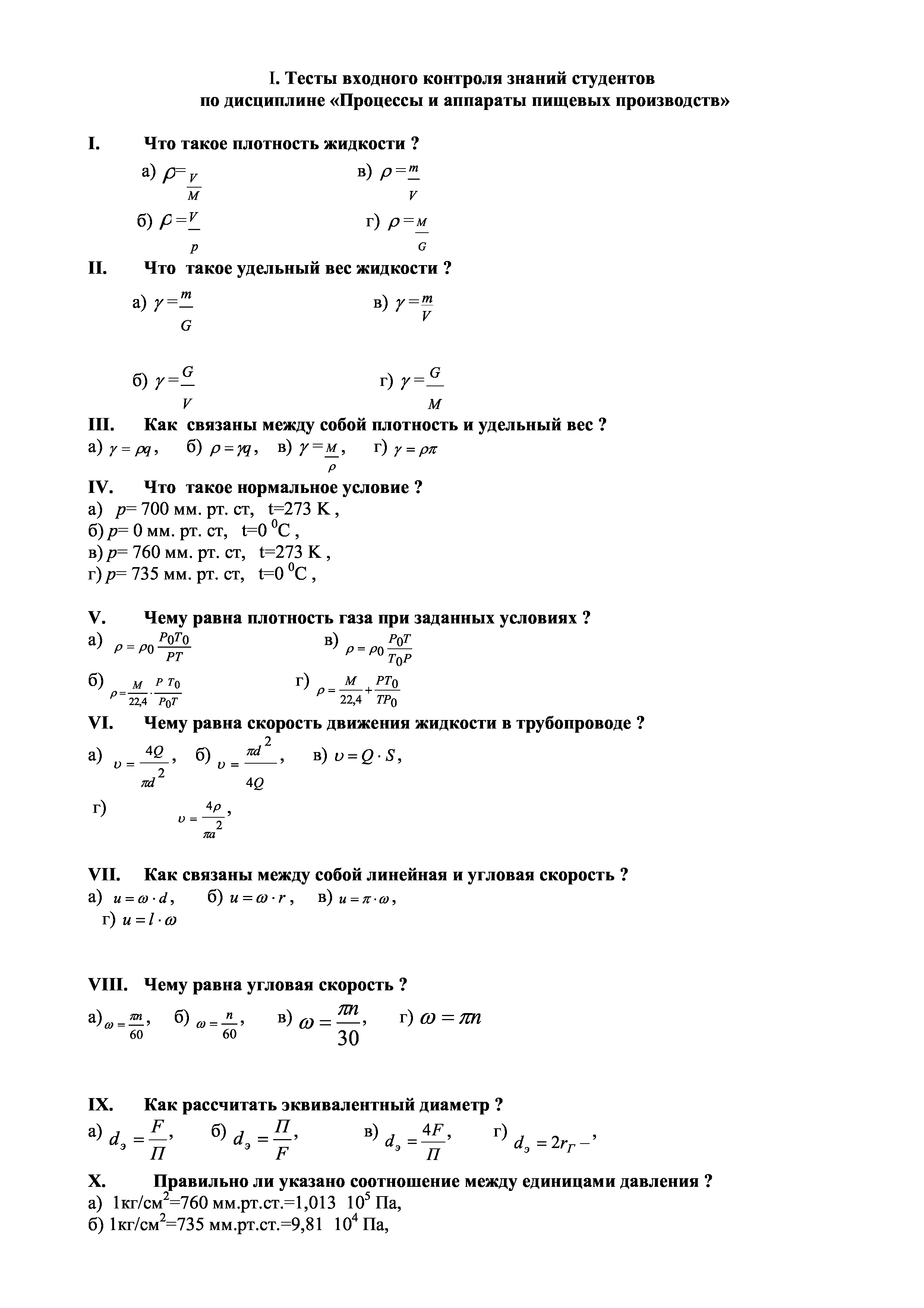 "Тесты входного, текущего контроля по дисциплинам кафедры ''Процессы и аппараты пищевых производств''" - читать интересную книгу автора (Николаев Г.И., Ямпилов С.С., Ильина М.В.,...)