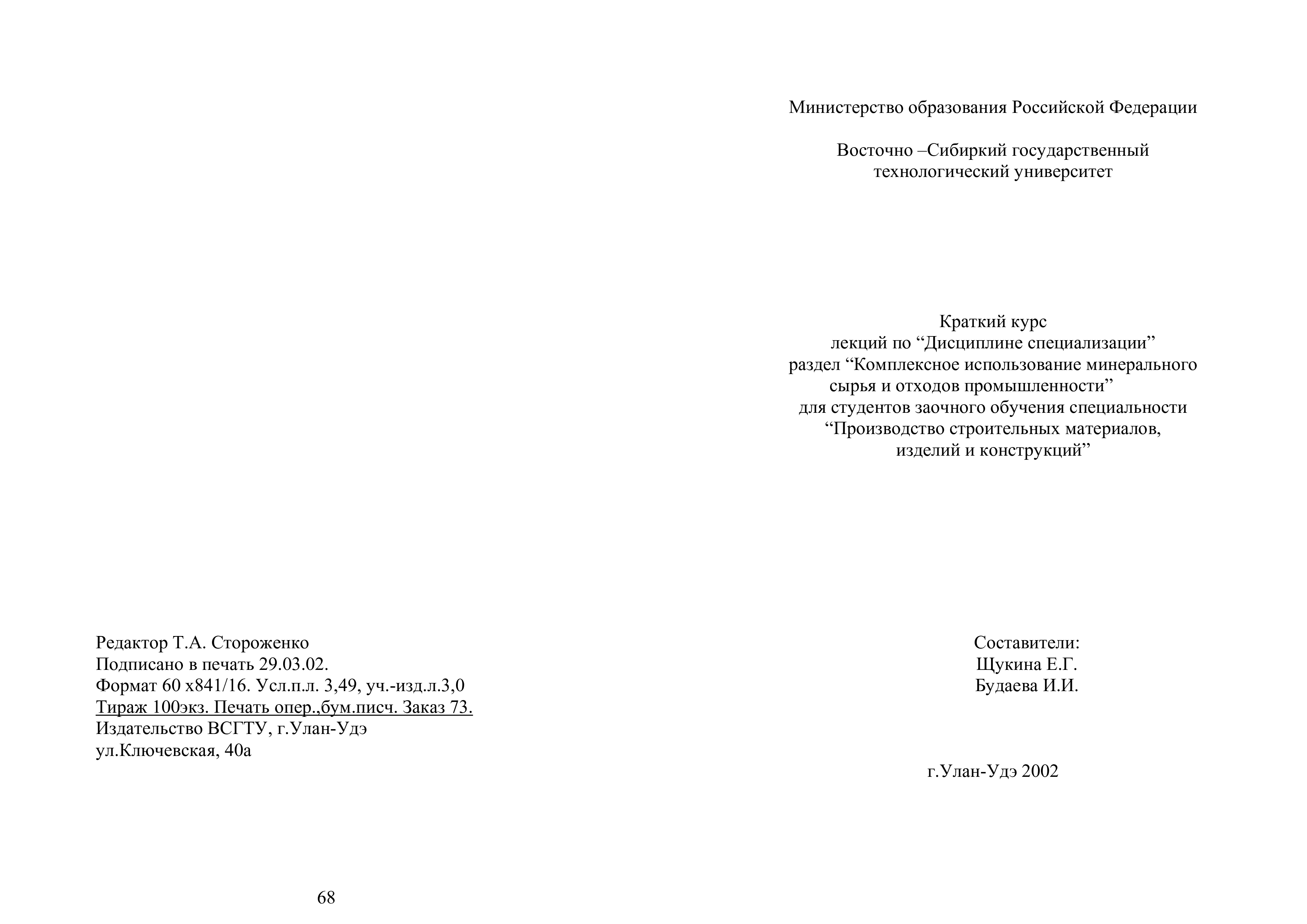 "Комплексное использование минерального сырья и отходов промышленности. Краткий курс лекций " - читать интересную книгу автора (Щукина Е.Г., Будаева И.И.)