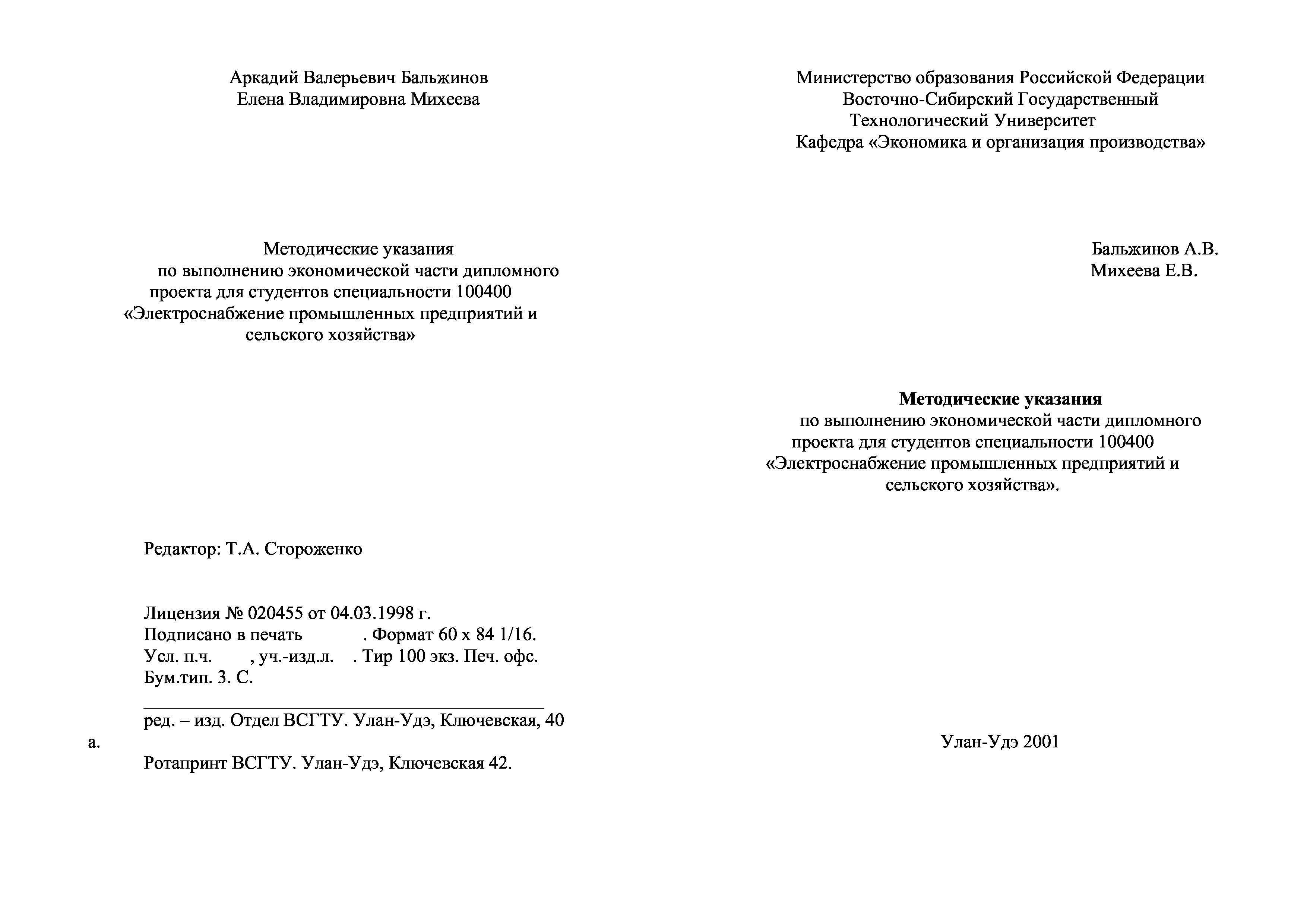 "Методические указания по выполнению экономической части дипломного проект для студентов специальности 100400 - ''Электроснабжение промышленных предприятий и сельского хозяйства''" - читать интересную книгу автора (Бальжинов А.В., Михеева Е.В.) |