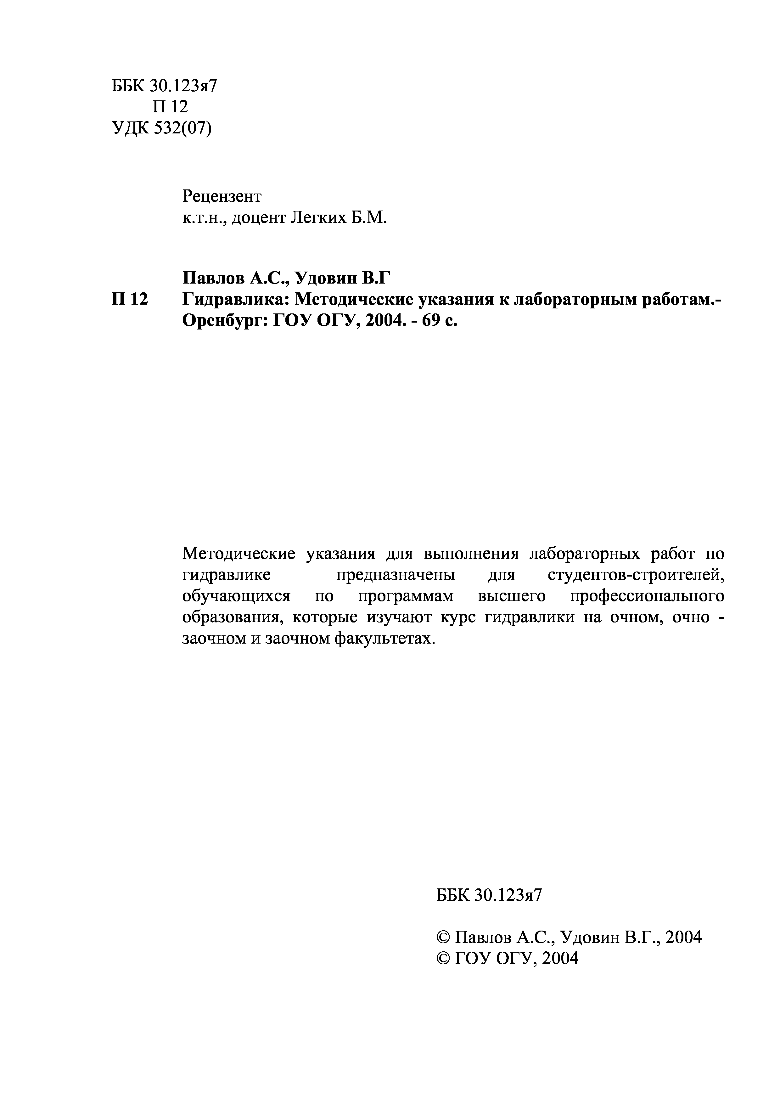 "Гидравлика: Методические указания к лабораторным работам" - читать интересную книгу автора (Павлов А.С., Удовин В.Г.) |
