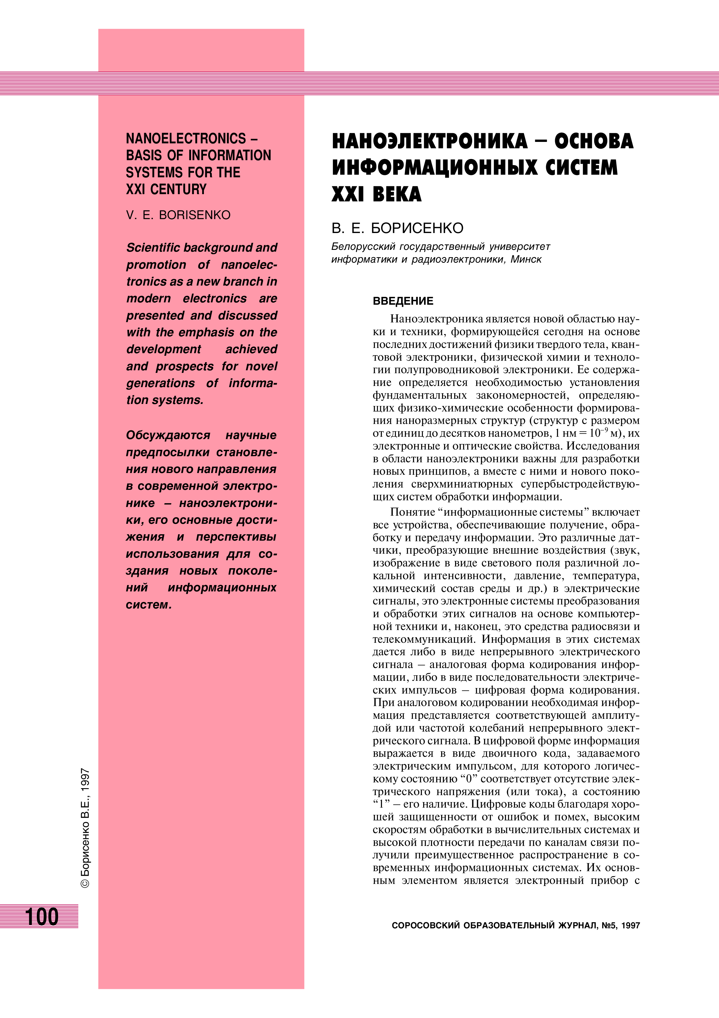 "Наноэлектроника - основа информационных систем XXI века" - читать интересную книгу автора (Борисенко В.Е.)