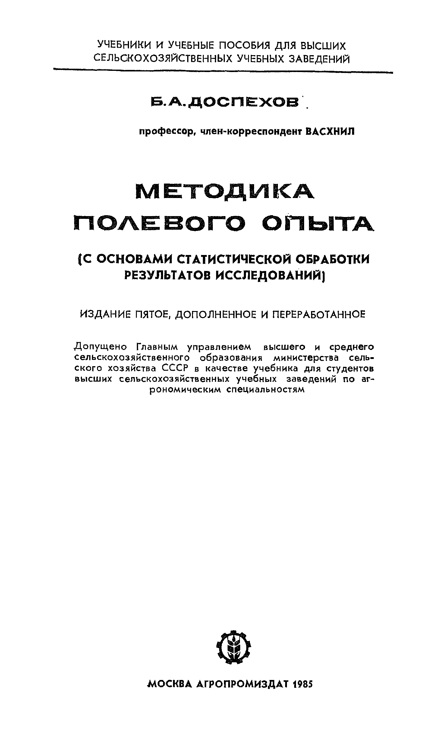 "Методика полевого опыта (с основами статистической обработки результатов исследований)." - читать интересную книгу автора (Доспехов Б.А.) |