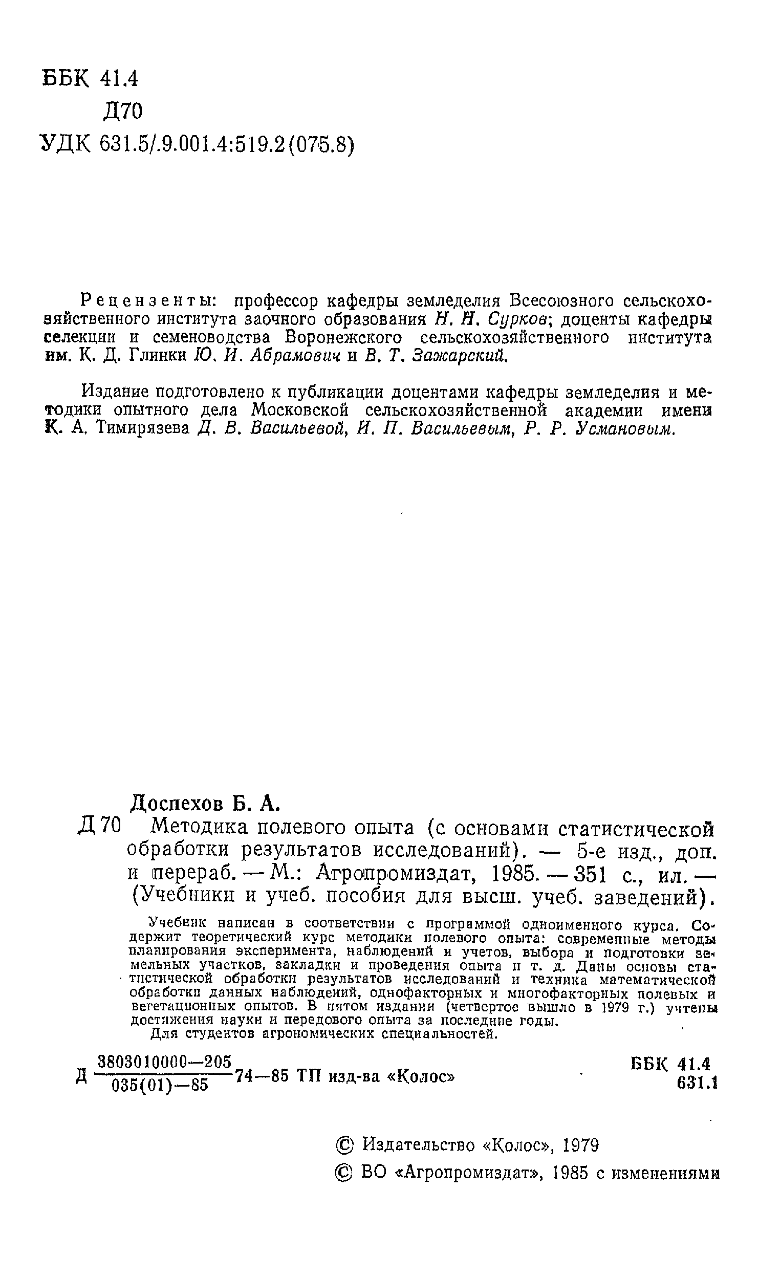 "Методика полевого опыта (с основами статистической обработки результатов исследований)." - читать интересную книгу автора (Доспехов Б.А.) |