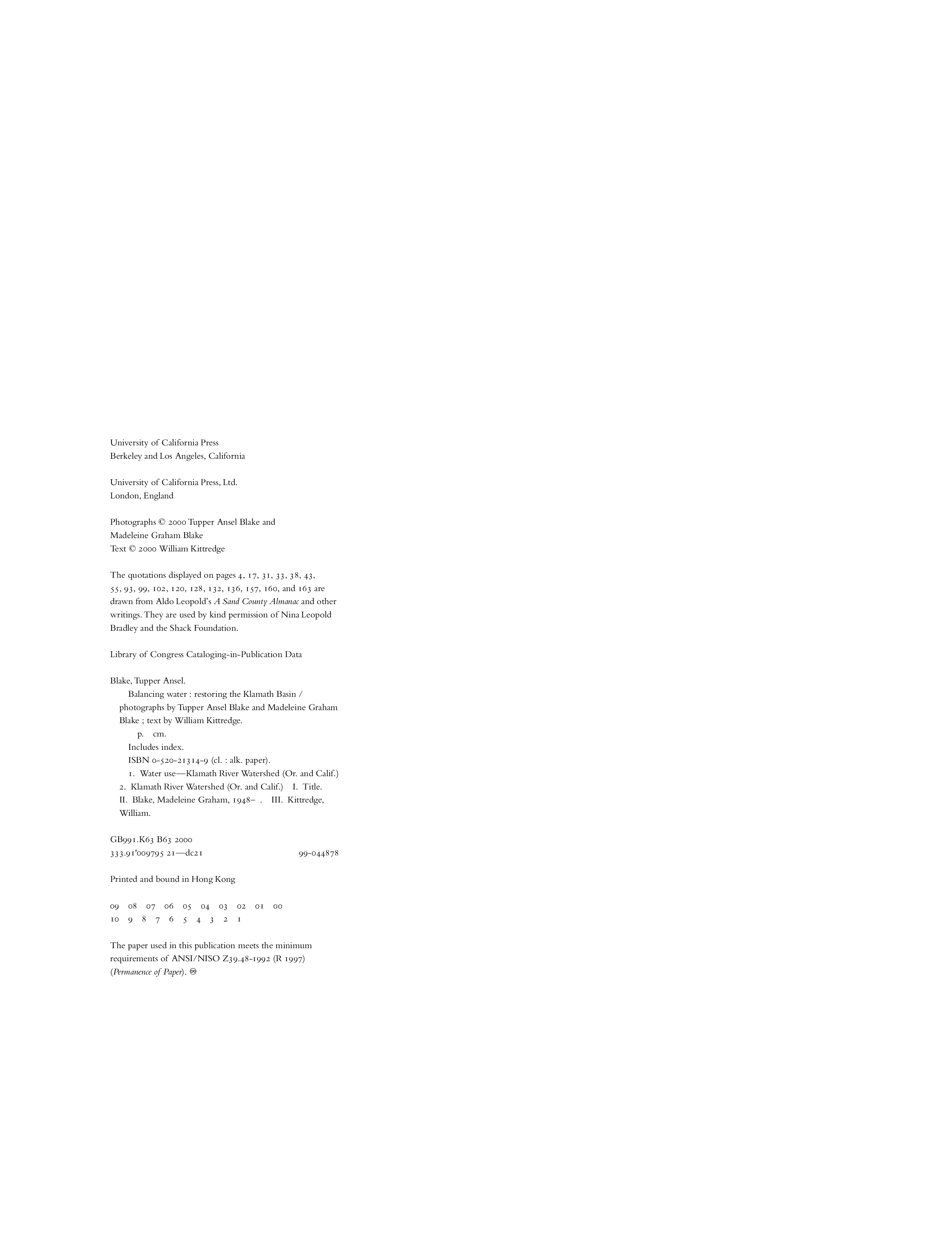 "Balancing Water: Restoring the Klamath Basin" - читать интересную книгу автора (Tupper Ansel Blake, Madeleine Graham Blake, William Kittredge) |
