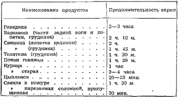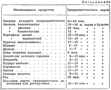Ниже приведены сроки продолжительности тепловой обработки различных продуктов.