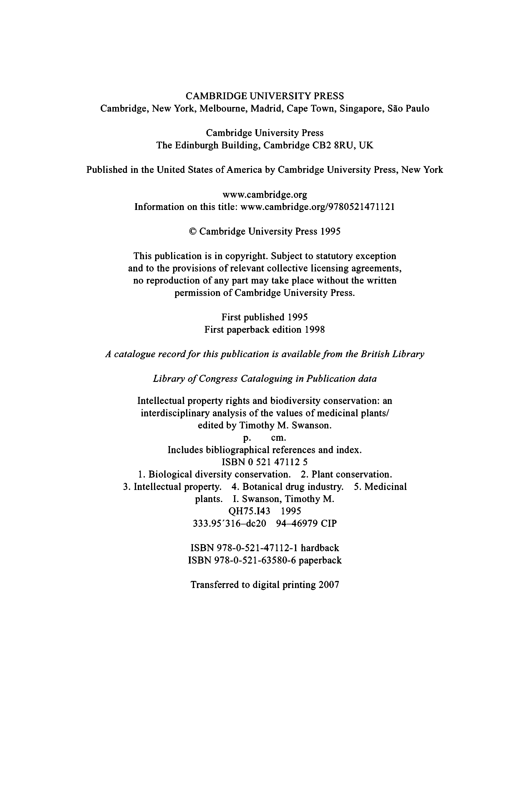 "Intellectual Property Rights and Biodiversity Conservation: An Interdisciplinary Analysis of the Values of Medicinal Plants" - читать интересную книгу автора (Timothy Swanson) |