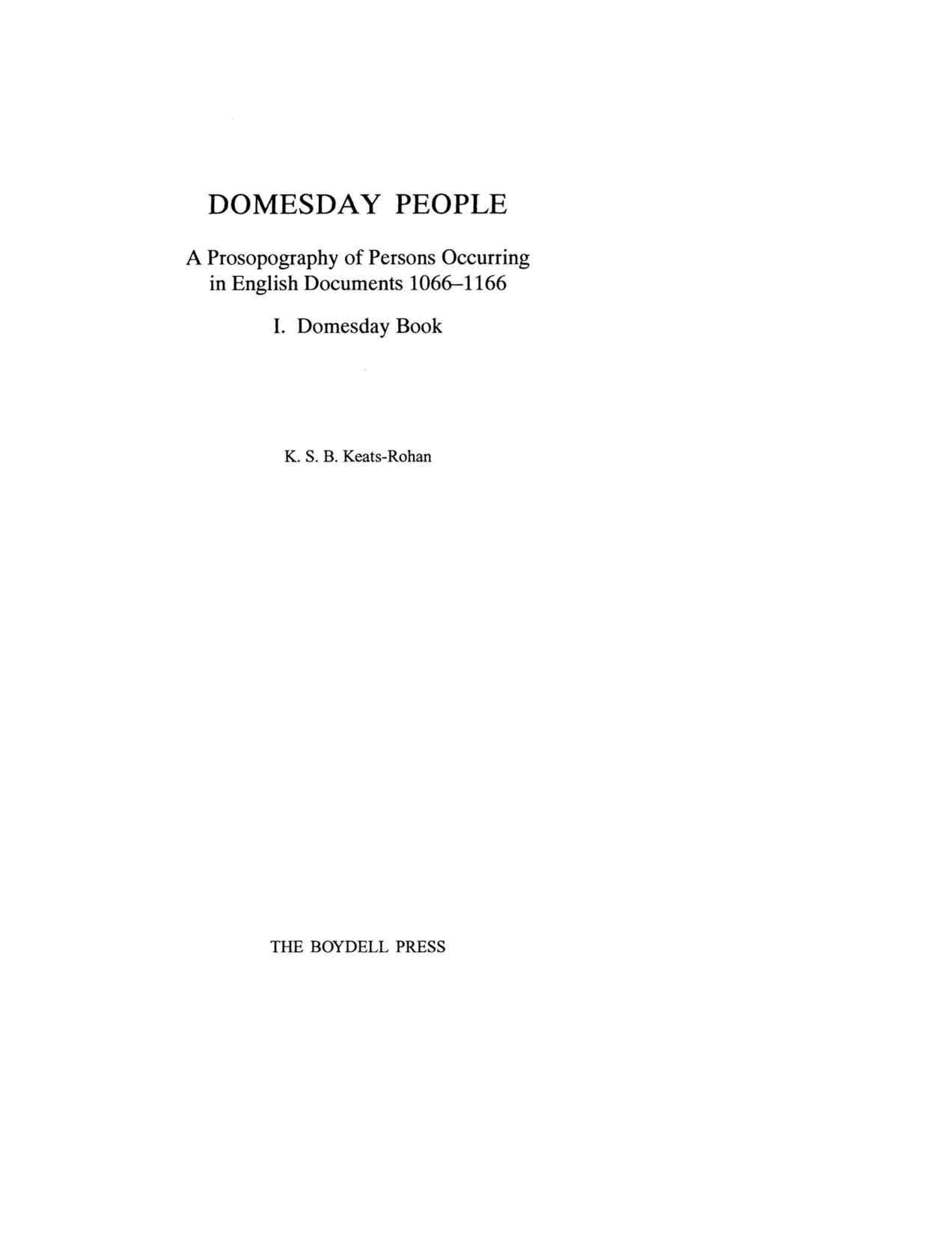 "Domesday People: A Prosopography of Persons Occurring in English Documents 1066-1166 I: Domesday Book" - читать интересную книгу автора (K.S.B. Keats-Rohan) |