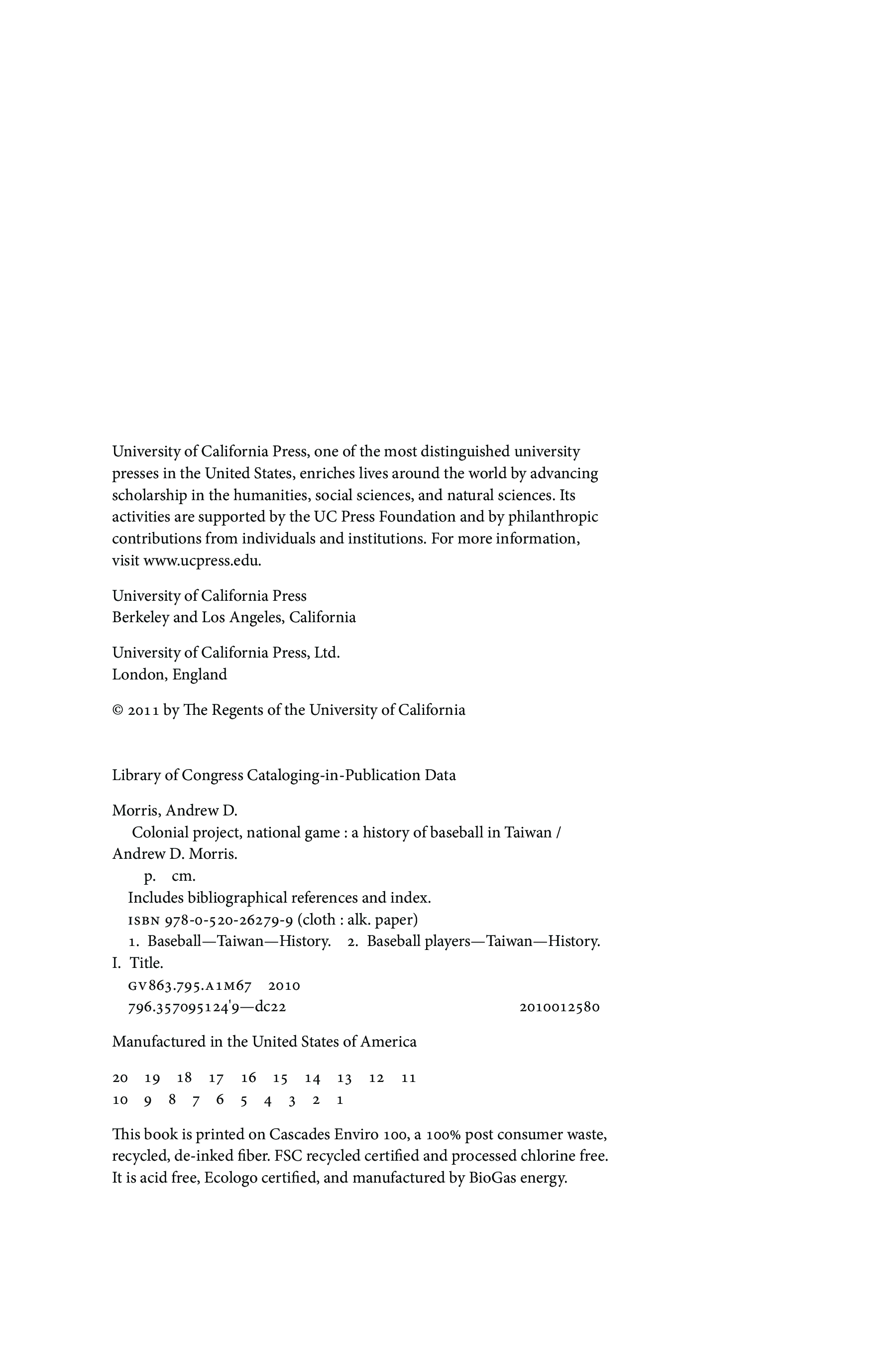 "Colonial Project, National Game: A History of Baseball in Taiwan " - читать интересную книгу автора (Andrew D. Morris)