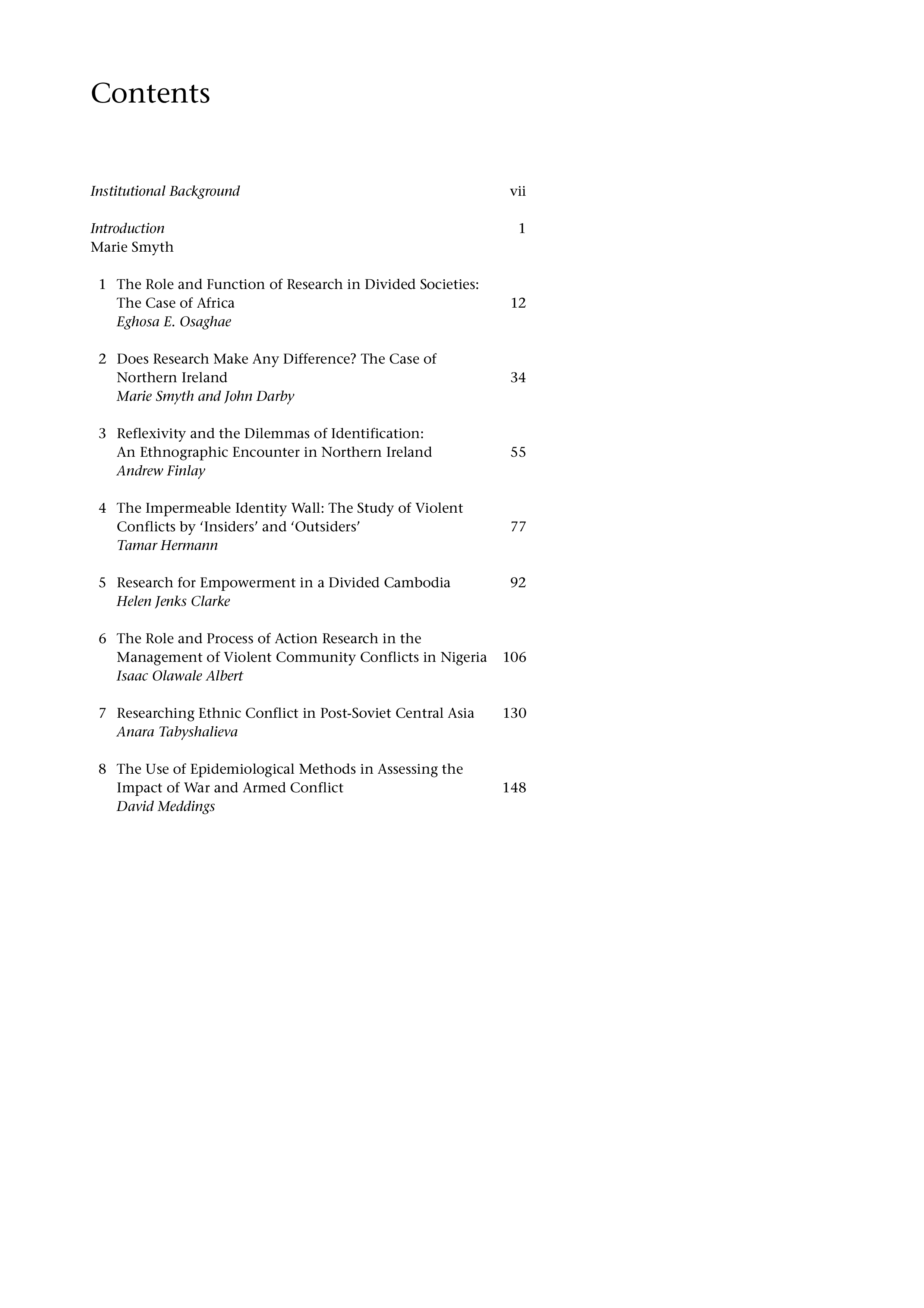 "Researching Violently Divided Societies: Ethical and Methodological Issues" - читать интересную книгу автора (Marie Smyth, Gillian Robinson) |