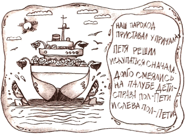 * * *Девочка Лёля бежит за трамваем,словно в «пятнашки» с трамваем играя.Вот разогнался трамвайчик предельно:ножки отдельно, головка отдельно…ИЗ СЕРИИ «ДЕТСТВО» * * *По кривой, извилистой дорожке,через лес и горы напрямикна машине ехали уроды -ехали живого хоронить.За рулем сидел у них безрукий,а безногий жал на тормоза.А слепой указывал дорогу,а дурак бибикал без конца.Вдруг из леса выскочила банда -грузовик пришлось остановить.И немой глухому что-то гаркнул,А безрукий поднял дробовик.Вот раздались выстрелы слепого -сразу пять бандитов наповал.Половина банды разбежалась,но безногий тут же их догнал.Одного бандита не приметил -спрятаться в болоте тот решил,но слепой давно его заметил,а безрукий с кольта уложил…