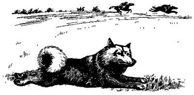 Туман стелился над улицей. Дик Престон вышел из машины и потянулся. Он был совсем разбит и сделал несколько освежающих упражнений. Вспомнив о маленькой собаке в корзине, он решил выпустить ее немного погулять. Открыв крышку, он посмотрел в корзину и крепко выругался: корзина была пуста, а в боку ее виднелась небольшая дырка. Дик помотал головой, стараясь припомнить, где мог исчезнуть пес. Потом вспомнил: полчаса назад он останавливался проверить мотор. Ему не пришло в голову, что пес может прогрызть корзину и вылезти из машины. Дик не знал, с какой собакой имел он дело. В это время Тури — финский шпиц, хвост колечком, острые уши, цвет лисицы — сидел на траве и осматривал окрестности. Ему было 4 месяца. Его темные глаза с любопытством, но без особого беспокойства разглядывали новую местность. Большинство молодых собак боится одиночества, но финский шпиц не знает слова «страх». Он всегда очень осторожен и при этом очень самоуверен. Только сегодня его взяли у заводчика. Дик Престон купил его в подарок своей невесте. Тури решил, что корзина довольно неудобная, и мгновенно прогрыз ее. А уж выскочить из машины не составило труда, пока голова мужчины была под капотом. Тури не видел особой причины оставаться с этим человеком. Спустя четверть часа Тури вошел под защиту леса. В своей короткой жизни он не слишком часто бывал среди дикой природы и поэтому не знал, что нужно стараться быть незаметным. Добравшись до зарослей, он потратил несколько минут на чистку лап и шерсти. Потом поймал мышь, съел ее, свернулся калачиком и заснул. Разбудил его голос Престона. «Иди же, хороший, маленький, иди ко мне», — заманчиво звучало где-то неподалеку. Тури выследил своими черными глазами мужчину, но не пошевелился. Не было никакого повода подчиняться этому голосу, ничего не значащему для него. Он очень хорошо знал, где его дом, несмотря на более чем двадцатикилометровое расстояние до него. Потом он повернет свой черный нос на родину, но пока он был совершенно счастлив. Дик звал, кричал, ходил взад-вперед, потом выругался. Немигающими глазами собака наблюдала за ним. Глаза у нее такие же, как у ее родственников — лапландских лаек. Даже нос собаки не двигается. Наконец мужчина ушел. Он был взбешен: он заплатил за собаку большие деньги — это редкая порода в Англии, — но что было делать? Тури полежал еще немного. Глубокий покой струился над миром, миллионы звезд высыпали на небе, и Млечный путь — индейский «волчий след» — выглядел бледной серебряной полосой. Начали шевелиться лисы. Прошла лисица с двумя лисятами, она увидела собаку, но не обратила на нее внимания. Тури распрямился, он почуял огонь, а костер пробуждал в нем инстинкт предков. На маленьких рыжих лапках он легко двигался через лес, пока не увидел отблеск огня. И еще пахло едой. Тоска по родине беспокоила его, но прежде чем окончательно двигаться домой, надо было осмотреться. Добравшись до края леса, Тури осторожно принюхался и тихо пополз дальше. Там, у фургона, были люди, но это его не беспокоило. Тепло костра манило его. Он был умен, но он был еще только щенком и не заметил присутствия сторожевой собаки. Собака же выскочила, схватила его и молча затрясла, и лишь счастье Тури спасло его шею от перелома. Щенок завизжал так громко, что цыган подскочил и в две секунды спас Тури. Впрочем, это был не цыган, а скорее безра